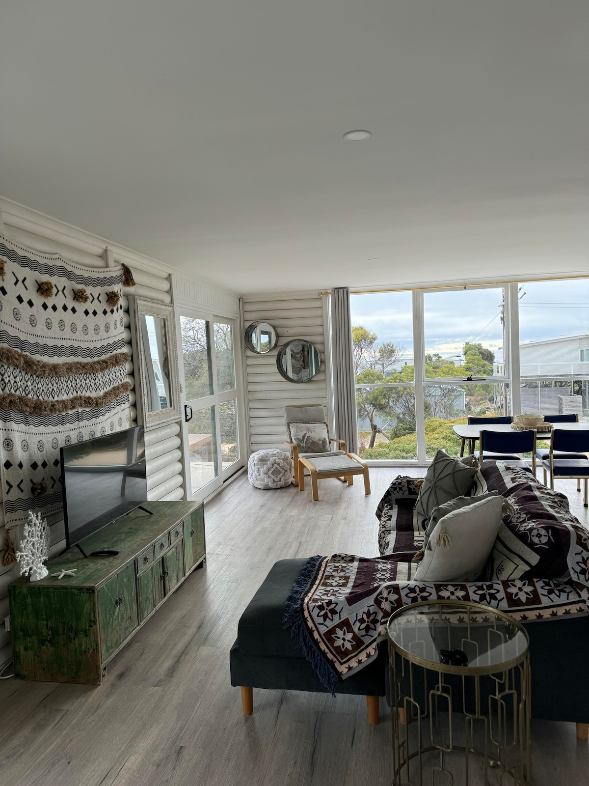 This perfectly furnished home links style with comfort to create a space that families, couples and friends can all enjoy. The master bedroom, kitchen and living areas have beautifully captured the stunning backdrop of Penneshaw Beach and the ocean views of Backstairs Passage and brought it into the home. The flow of the house runs effortlessly from the kitchen through the living area and onto the deck creating an ideal environment for entertaining, while the bedrooms offer adequate privacy.