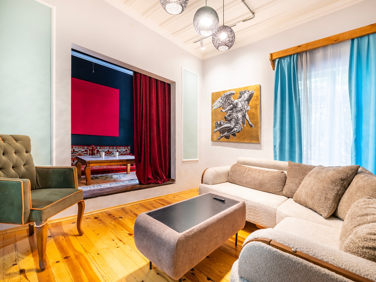 A solo unos pasos de la plaza Taksim, esta casa de hermoso diseño ofrece comodidad y estilo en el corazón de Estambul. El moderno interior está cuidadosamente amueblado con comodidades de alta calidad para que disfrutes de una estancia relajante. Disfruta de la sala de jacuzzi privada con un proyector de pantalla grande para noches de cine acogedoras, o relájate en tu propio jardín tranquilo. Cerca del transporte público y de las principales atracciones turísticas, es el punto de partida perfecto para explorar la ciudad.