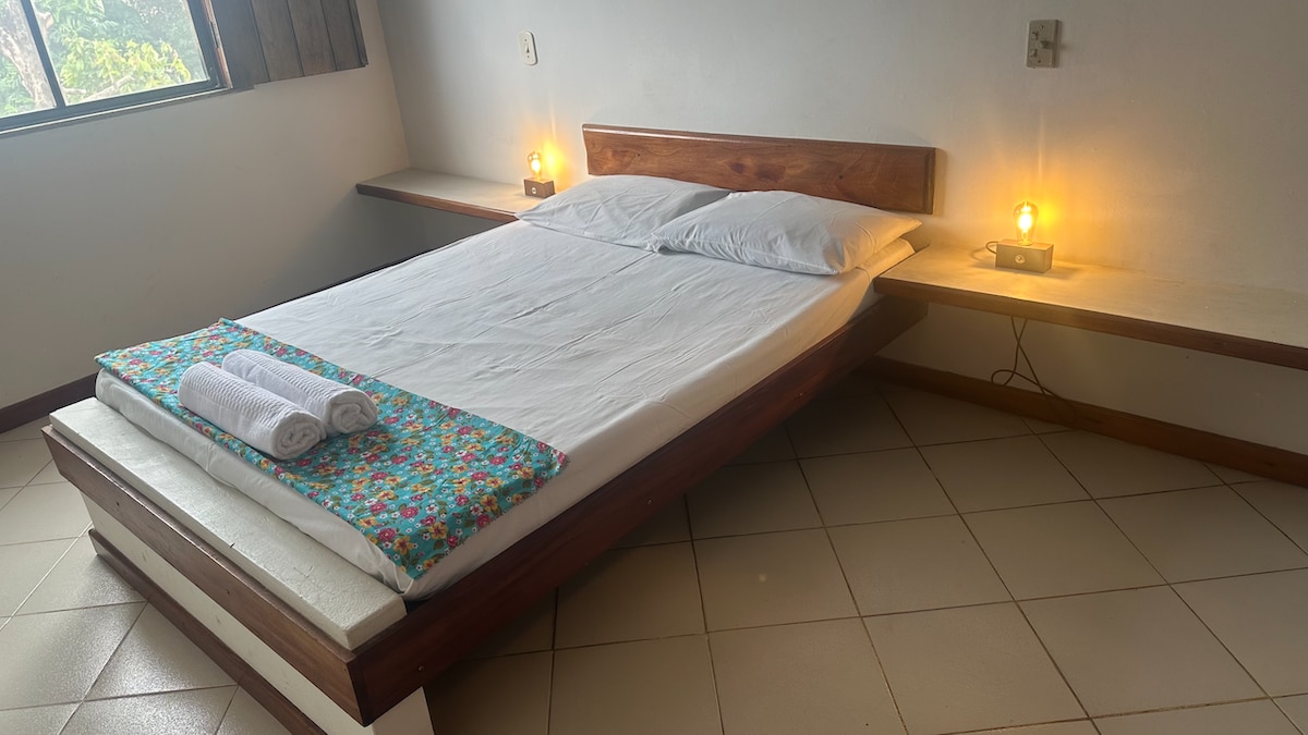 Chalet para parejas con minibar, ventilador de techo y otro común, ubicado en una zona tranquila, en la naturaleza, a 8 km de Itacaré, lejos del ruido de la ciudad y de fácil acceso, cuenta con piscina y estacionamiento privado, seguro con una puerta electrónica y una zona exterior segura. El lugar es muy privilegiado por su tranquilidad y la naturaleza circundante que le da un encanto especial además de estar ubicado cerca de las playas más hermosas de la ciudad, jeribucaçu, engenhoca, hawaizinho e itacarezinho.
