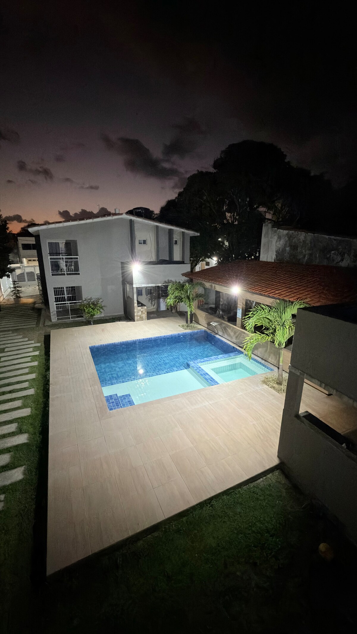Relájate con toda la familia en este tranquilo lugar para quedarse, cerca del mar. Casa familiar con piscina, terraza grande y espaciosa. 4 habitaciones equipadas con 3 con aire acondicionado, cocina completa, sala de estar y área de servicio, wi-fi, cámara de seguridad, cerca eléctrica, agua de compesa y pozo artesiano. 400 m de Praia, cerca de restaurantes, mercado, estación de policía, UPA, gasolinera. Las sábanas de cama y baño no están disponibles, tiene capacidad para 10 personas. Espacio para 10 personas.