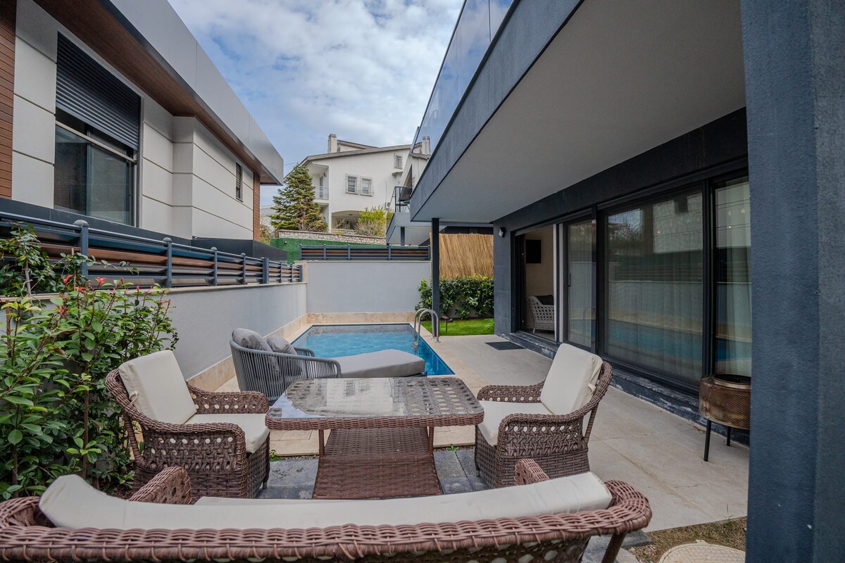 Disfruta del verano en nuestra moderna villa de 4 dormitorios en Alaçatı: ¡la piscina privada, el jardín soleado y toda la comodidad te esperan! Cada habitación tiene aire acondicionado, una cocina moderna, lavadora y artículos de limpieza. Controla fácilmente todo con el sistema de hogar inteligente. Disfruta de internet de 100 Mb y acceso a Netflix. Todos los muebles son nuevos y cuidadosamente seleccionados. Ubicación céntrica con fácil acceso a playas y restaurantes.