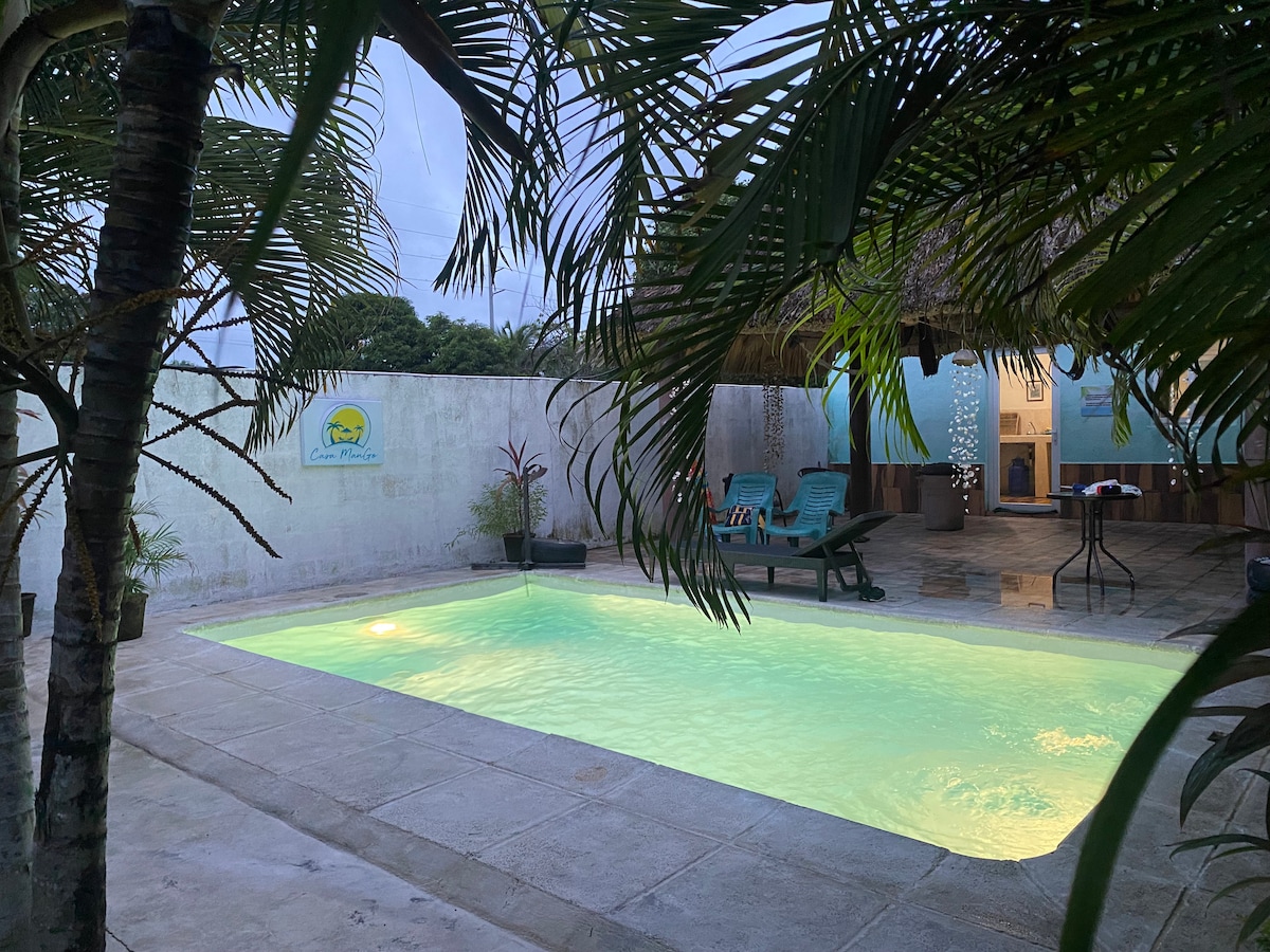 Hola amigos, ya estamos de regreso!! Este lugar único tiene su propio estilo, piscina de laja super elegante, techada y climatizada, la ubicacion es excelente y muy accesible, la casa super espaciosa y con ambientes exepcionales muy bien ubicados, comodidades tales como AC en sala y habitaciones, wifi, television, cable y equipo de sonido interno y bocina portatil, cuenta tambien con una cocina muy bien equipada con lo necesario, y la playa a solo 60 mts. lineales. ¡Esperamos servirte pronto!