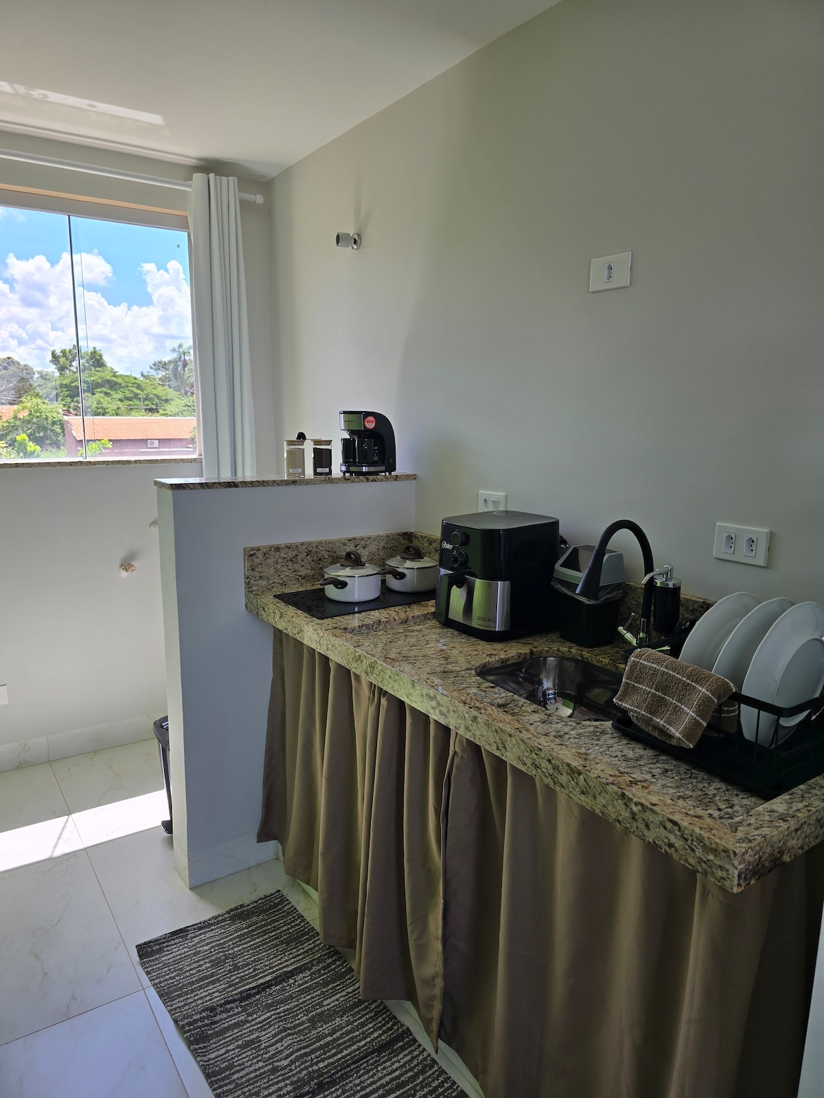 Loft amueblado y aire acondicionado 2 camas: 1 colchón doble de muelles ensacados Probel en el mesanino + 1 sofá cama individual en la sala de estar. Wi-Fi Persianas opacas. TV inteligente de 43 pulgadas. Refrigerador 240L Mesa y sillas Mesas de noche Armario para ropa Cuarto de baño con caja de vidrio Filtro de agua. • Cafetera Airfryer mezclador Plancha para la ropa Sanduicheira Utensilios de cocina A 10 minutos del centro. A 14 minutos de Unifio. 6 min Estácio A 2 minutos de Castor Factory. Junto al Distrito Industrial en este espacio tranquilo y con estilo.