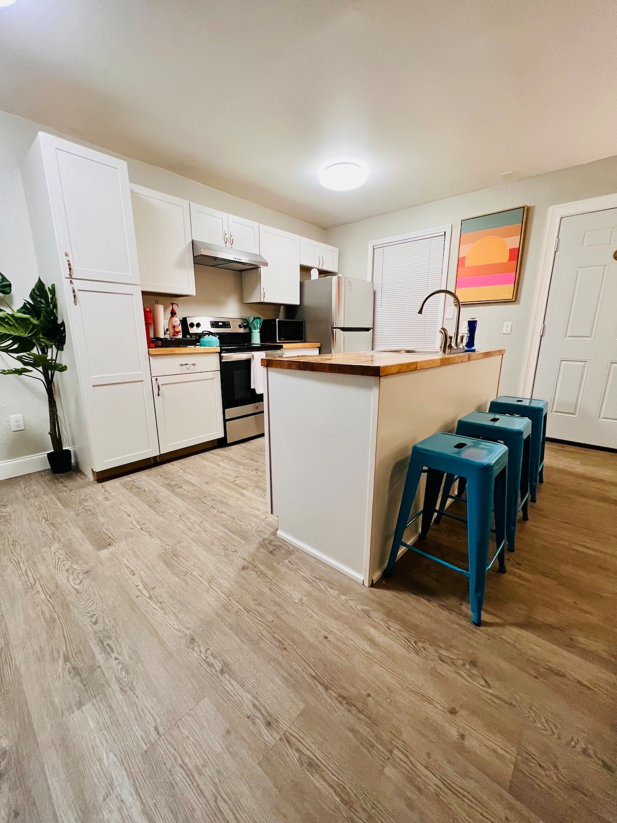 Have fun with the whole family at this stylish newly renovated home. Everything is modern & BRAND NEW! Enjoy a nice cozy evening in the backyard next to the fire. We have a king size bed in the master including a private FULL bathroom with a stand-up glass shower. The 2nd bedroom has a queen size bed next to the 2nd bdrm that has a garden tub. The living room couch pull outs & makes for queen bed. Each room has a smart tv with all your favorite shows.