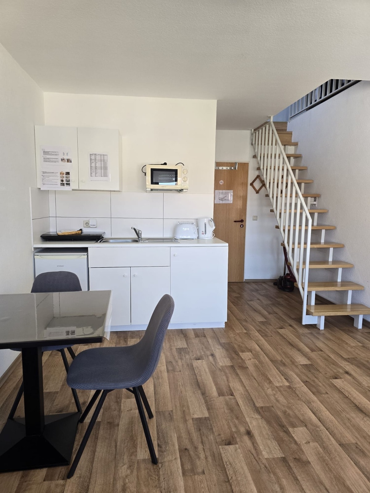 Este moderno departamento de negocios está en un moderno edificio de departamentos con 12 departamentos en Stuttgart-Zuffenhausen. El apartamento se extiende sobre 2 niveles, con la sala de estar, la cocina y el baño ubicados en el primer nivel y el área para dormir en la galería. Las modernas comodidades de estilo Bauhaus, la luminosa sala de estar abierta, la cocina totalmente equipada, una terraza privada en la azotea y el ascensor de la casa, ofrecen todo lo que necesitas para una estancia perfecta.