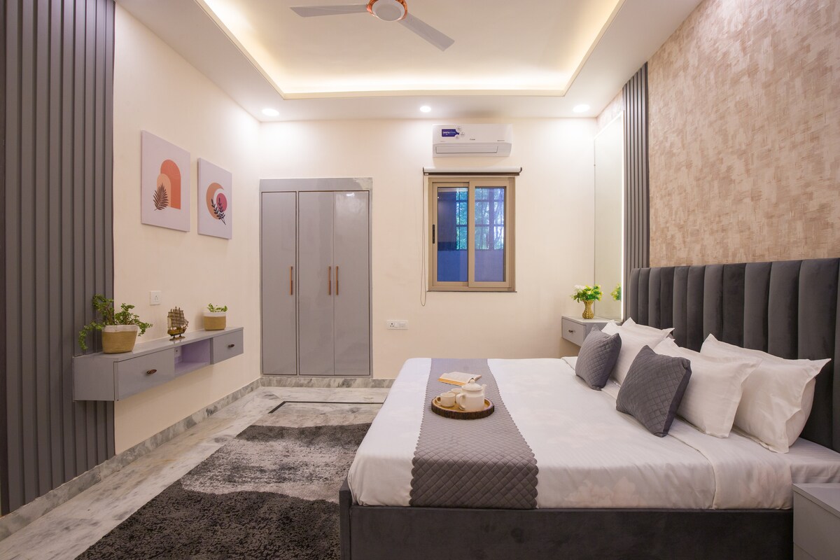 Bienvenido a Maison Royale Jaipur, un lujoso refugio de 3BHK diseñado en un elegante tema francés moderno, ubicado en el corazón de Jaipur, cerca de la estación de metro Vivek Vihar. Entra en un mundo de suaves tonos pastel, decoración parisina elegante, iluminación llamativa e interiores cuidadosamente seleccionados que combinan la sofisticación europea con la calidez real de Jaipur. Ya sea que estés visitando con tu familia, tu pareja o tus amigos, este espacioso alojamiento ofrece el equilibrio perfecto entre comodidad, privacidad y lujo.