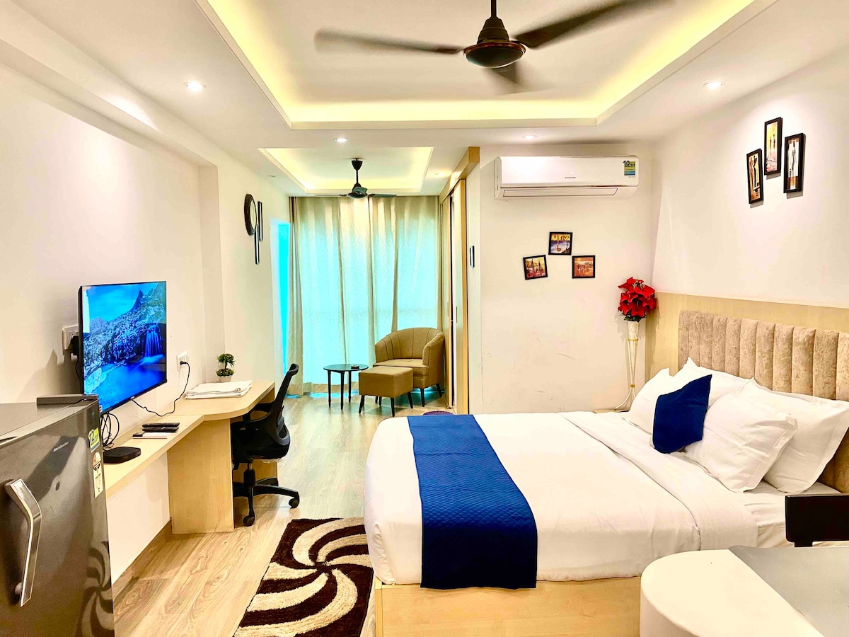 NO SE ADMITEN 🚫VISITANTES. Disfruta de una experiencia elegante en este lugar céntrico. Luminoso y espacioso apartamento de servicio moderno de nueva construcción con hermosa decoración, ESTACIÓN ✅ DE METRO a 600 metros ⭐️ ACCESO A LA PISCINA EN LA AZOTEA DE 7:00 A. M. A 10:00 A. M. 4:00 P. M. 7:00 P. M. ⭐️ Todo el transporte está fácilmente disponible en la ubicación. ⭐️ Restaurantes, tiendas, salón y tiendas están disponibles en la propiedad. Despensa ⭐️ totalmente abastecida con utensilios ⭐️ Está a 20 minutos en auto del aeropuerto y a 10 minutos en auto de Railway Stat.