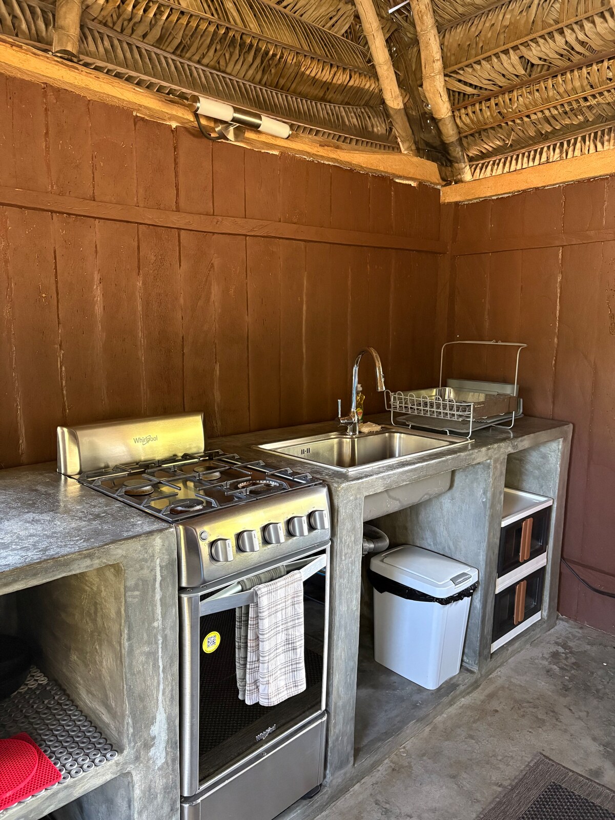 AGUA POTABLE FILTRADA EN TODOS LOS GRIFOS! Descansa, recarga energías y conéctate con la naturaleza en estas dos cabañas rústicas en la selva de San Pancho. Prepara un desayuno en la cocina, toma tu café al ritmo del canto de los pájaros, refréscate en la alberca natural y relájate en una hamaca bajo un árbol de parota. Admira el cielo estrellado y duerme a gusto. Estás en un rancho de 1.5 ha, a 5 min del pueblo en coche o 20 caminando.