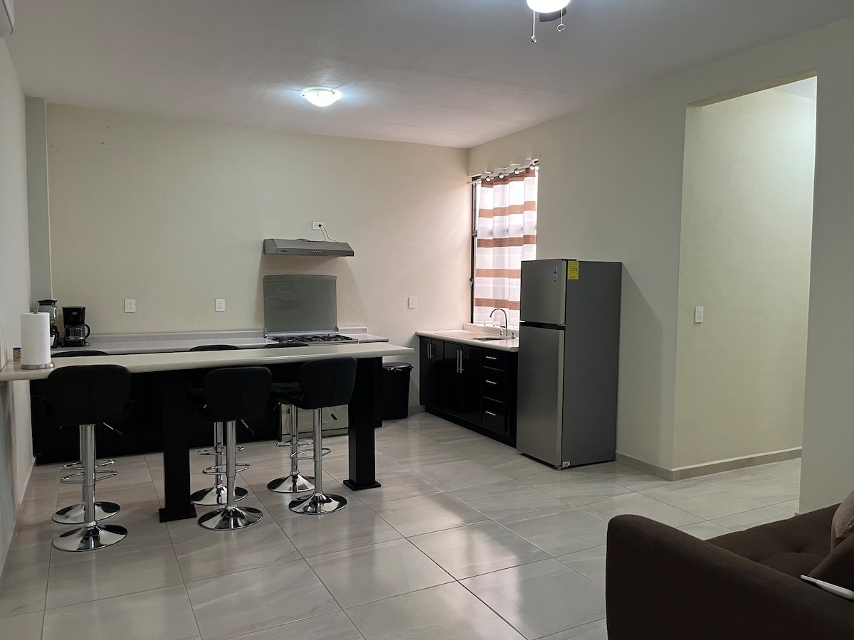 Disfruta de un cómodo apartamento privado ubicado a solo 3 min del centro de Calvillo. Cuenta con 2 recámaras con cama Queen size, TV de 49 pulgadas , wifi de alta velocidad, agua caliente y todas las comodidades para una estancia agradable. Estáras cerca de restaurantes y cenadurías tradicionales, ideal para disfrutar la gastronomía local y la tranquilidad del pueblo. Además, contamos con servicio de lavandería con descuentos especiales para huéspedes.