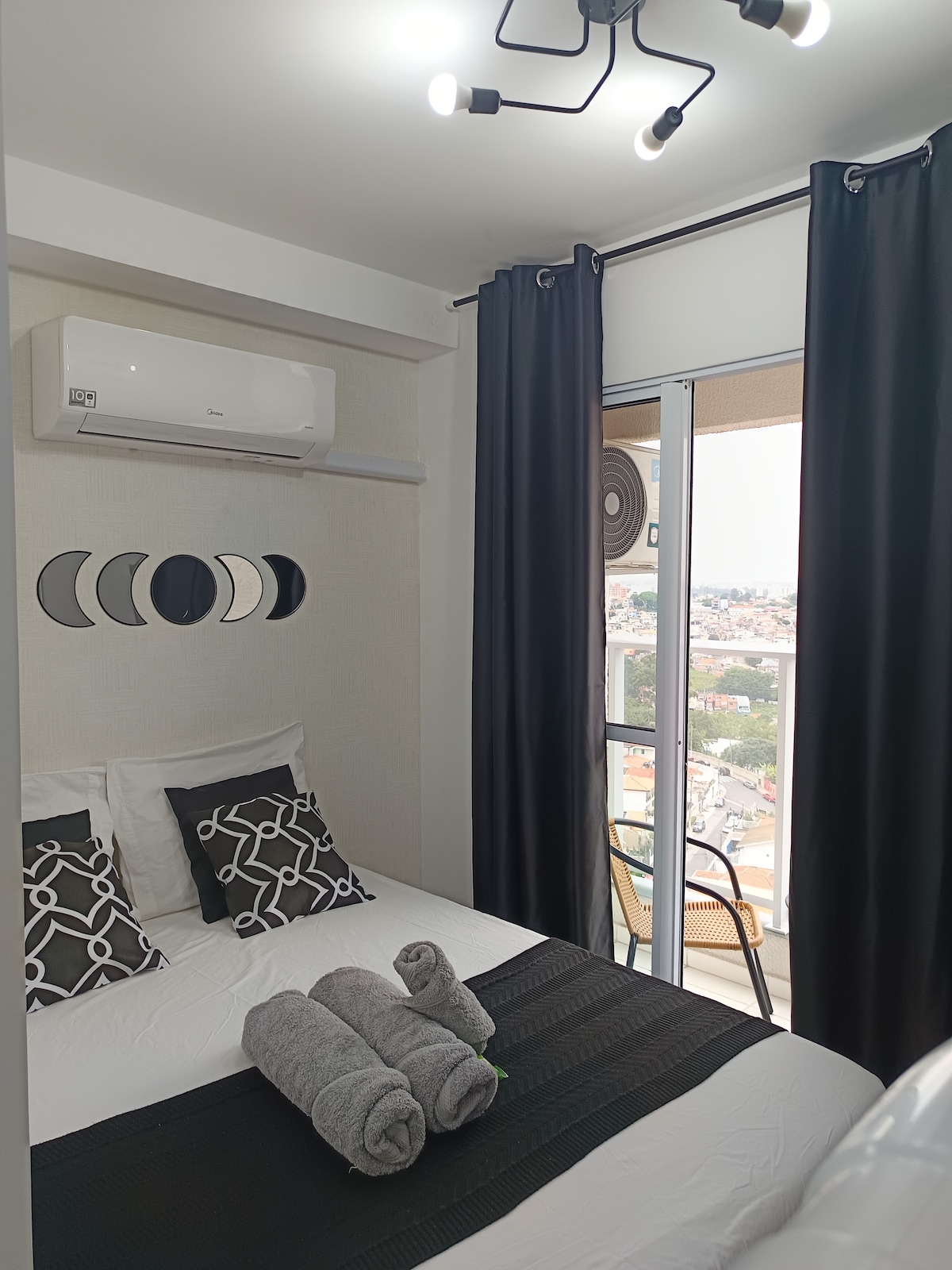 É um apt com um amplo espaço de lazer, onde além de aproveitar a área externa é ideal para reunir amigos e família. O apartamento tem dois quartos com A/C, sofá cama e acomoda bem de 4 a 5 pessoas. A cozinha é bem equipada com utensílios como cafeteira, sanduicheira, torradeira, liquidificador, batedeira e até uma churrasqueira elétrica. Um quarto é 1 cama de casal, no outro 1 de solteiro com 1 cama auxiliar e na sala tem 1 sofá cama. Próximo metro, estádio do Morumbi e tem tudo perto