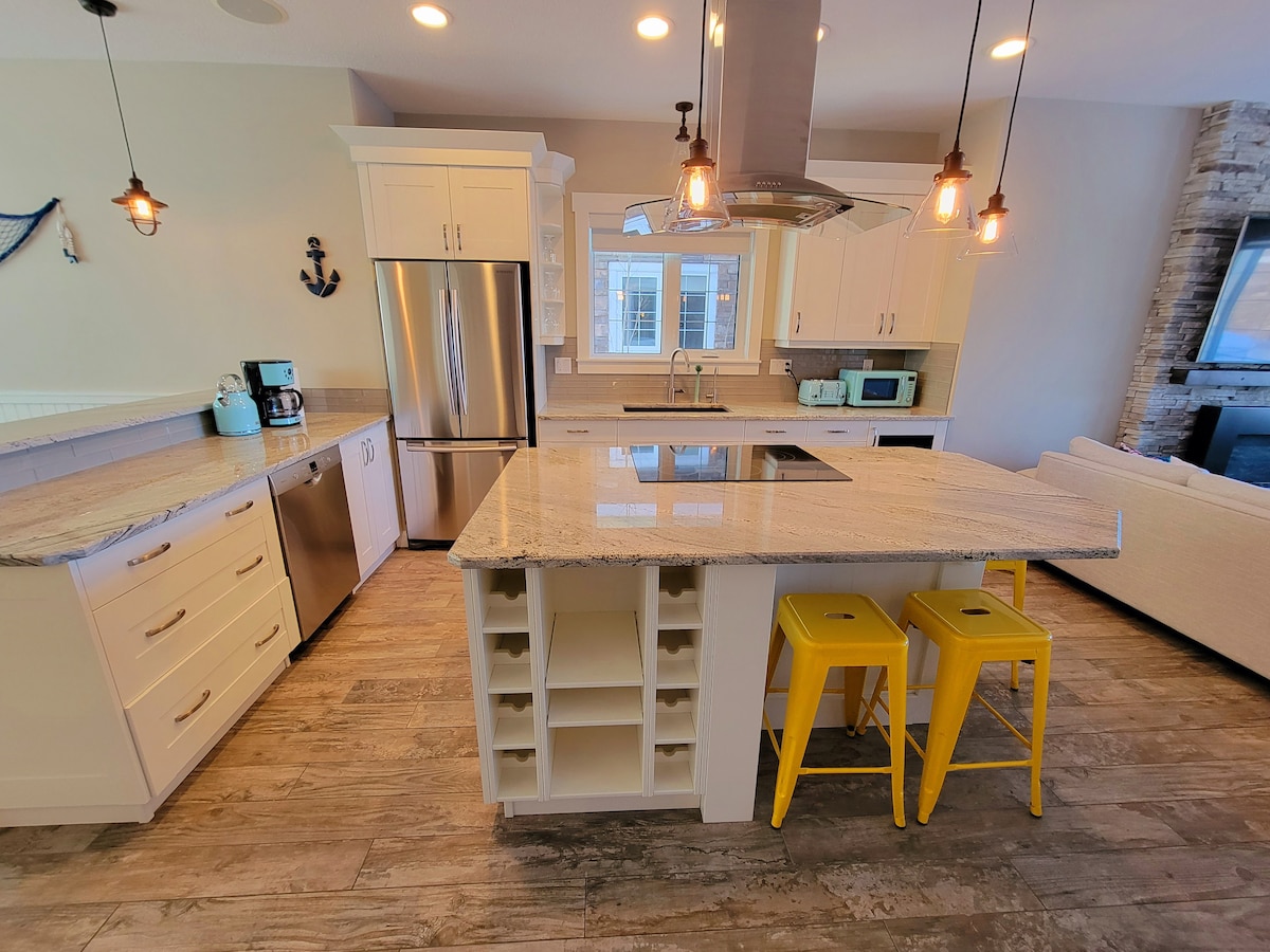 Ubicada en el CORAZÓN de la ciudad, a poca distancia a pie de todo y a pocos pasos de la playa, disfrutarás de unas espectaculares VISTAS AL PUERTO DEPORTIVO FRENTE AL LAGO mientras te hospedas en una casa de vacaciones totalmente reformada. Esta propiedad tiene una fabulosa cocina de concepto abierto perfecta para cocinar juntos después de disfrutar del agua, aire acondicionado, chimenea y una mesa de fuego, sección al aire libre y barbacoa en ese increíble balcón. Además, disfruta de nuestras TABLAS DE PADDLE, equipo de PESCA EN HIELO, PS4 y juegos de mesa para divertirte aún más. ¡APTO PARA NIÑOS con cuna y juguetes también!