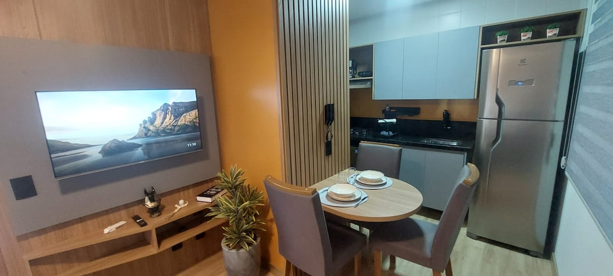 ¡Único! (Se admiten mascotas) Edificio en condominio, ocio y seguridad. Estudio nuevo y acogedor con garaje privado, aire acondicionado e internet (300 MB), Tv42 + apple Tv + Chromecast, gimnasio, piscina, sala de reuniones, co-working y lavandería Omo. Practicidad y refinamiento de alto estándar en una ubicación privilegiada. Junto al centro comercial, hipermercado, el hospital Amaral Carvalho y varios bares y restaurantes, todo a poca distancia a pie.