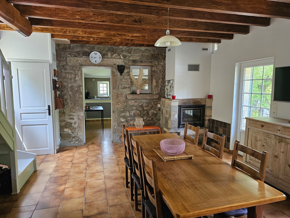 Masía de piedra con encanto, con aire acondicionado y red wifi-fibra. Jardín de flores y árboles. Piscina, huerto con frutas de temporada ( manzanas, cerezas, membrillos)..Terraza sombreada, con brasero y piscina contigua. Acceso privado al bosque cercano para dar un paseo. Zona de relajación con juegos al aire libre disponibles: tenis de mesa, mikado molkky gigante, petanca. Para los deportistas, descenso del Ardèche, barranquismo y tenis cerca. Gastos de limpieza incluidos sábanas y toallas para 6