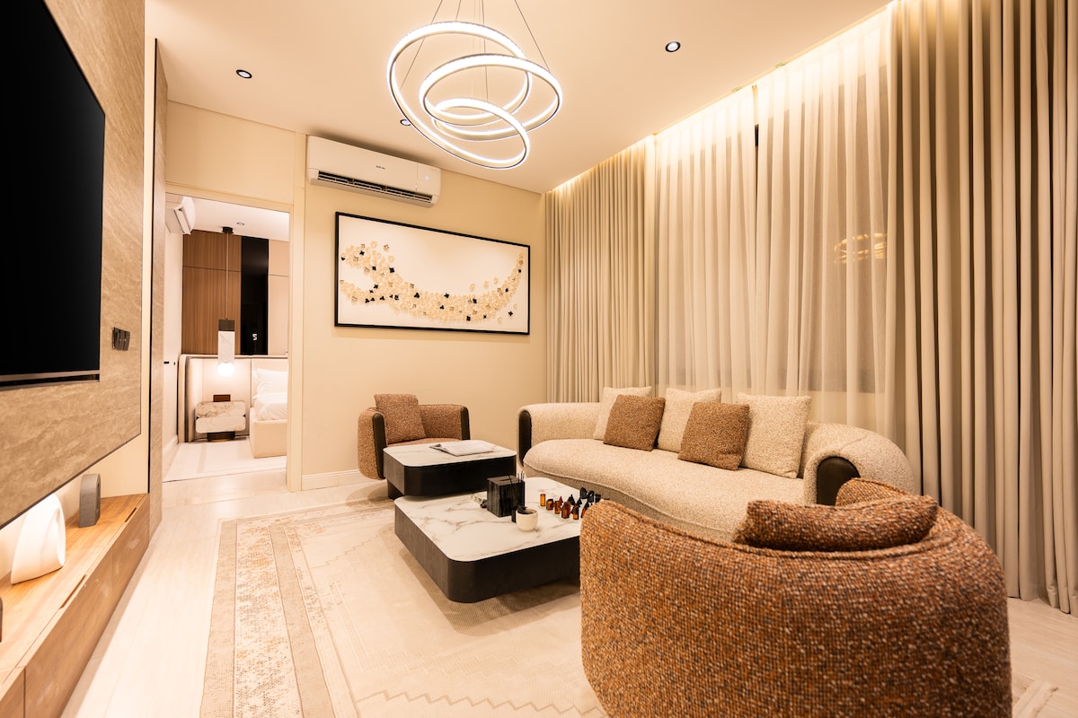 Vive el máximo lujo en un elegante loft dúplex en Al Rawdah, Jeddah, diseñado con un toque moderno y sofisticado que ofrece total comodidad y privacidad. Relájate en tu jacuzzi privado y disfruta de una experiencia cinematográfica en un televisor QLED de 85 pulgadas. Perfectamente ubicado cerca de la calle Hamad Al Jasser, cerca de los mejores cafés y restaurantes de la ciudad. Incluye estacionamiento privado, limpieza gratuita a pedido y un equipo profesional que garantiza una estadía perfecta. Estancia de lujo, donde la elegancia se une a la comodidad.
