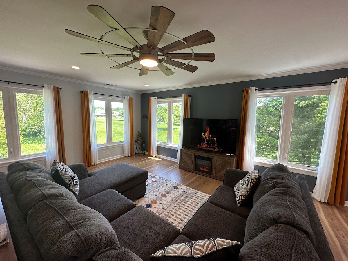 Los huéspedes pueden disfrutar de vistas panorámicas del poderoso río Ohio desde cualquier habitación de su suite privada. Contempla un hermoso amanecer o relájate mientras estás sentado en el porche viendo los barcos y barcazas que navegan por el río. ¡Cerca de la interestatal para llevarte al centro de Louisville para disfrutar de una cena, museo, partido de baloncesto o concierto en el KFC YUM Center y el mundialmente famoso Churchill Downs! A 1 milla de River Ridge. Ofrecemos un cargador solo para Tesla o puedes traer tu propio enchufe estándar por un cargo.