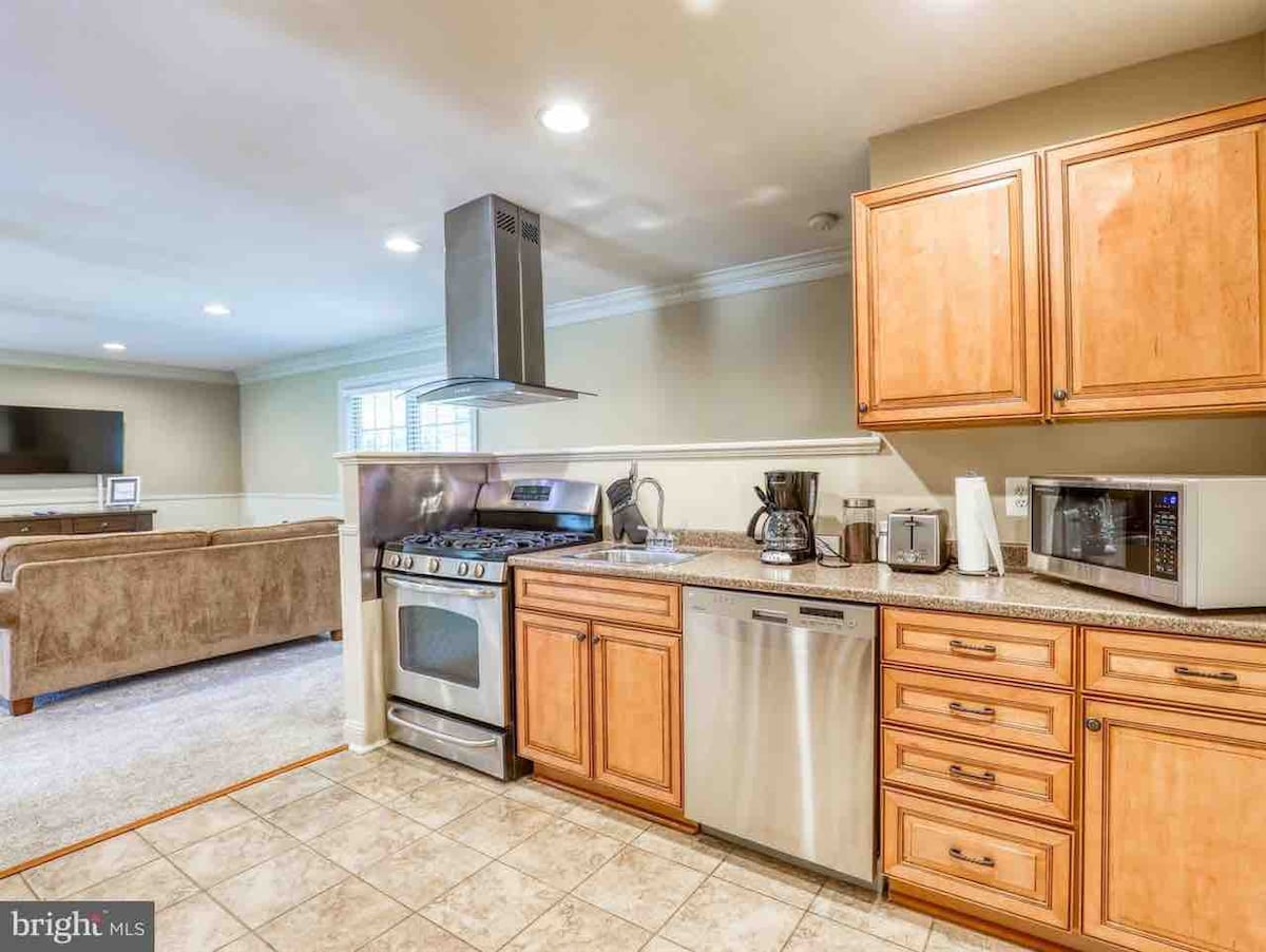 Kick back and relax, surrounded by incredible views and sounds of nature! This brand new space has tons of windows and light, overlooking the Potomac river. Use your private entrance to go out and picnic in the lavender field, or sit by the firepit and enjoy the sounds of the Potomac! Or relax with a book on the huge window seat! Only a mile from the National Historical Park, it is an easy walk to the shops, restaurants and trails. After a long hike, a brand new king size bed awaits you