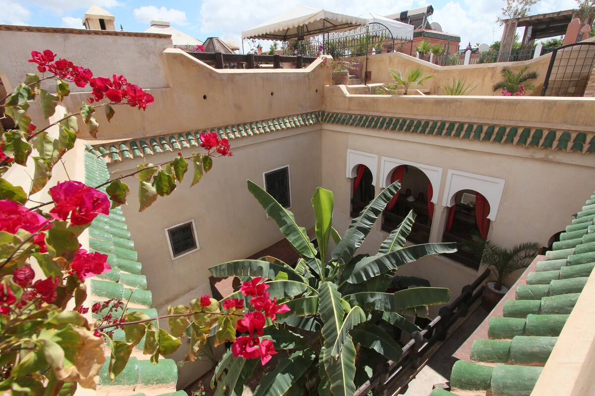 Salam aleikum, bienvenidos a “Maison Maroc - Riads, Boutique Hotel, Culture”. Sé con nuestros huéspedes, ¡te esperamos con ansias! Como anfitrión, estamos aquí para ti, te acercamos a la cultura y al país y te hacemos sentir como en casa. Esta elegante y acogedora suite con baño privado y aseo se encuentra en el hotel boutique Riad Almoulouk, en medio de la medina/casco antiguo de Marrakech. El precio incluye desayuno marroquí y servicio diario.