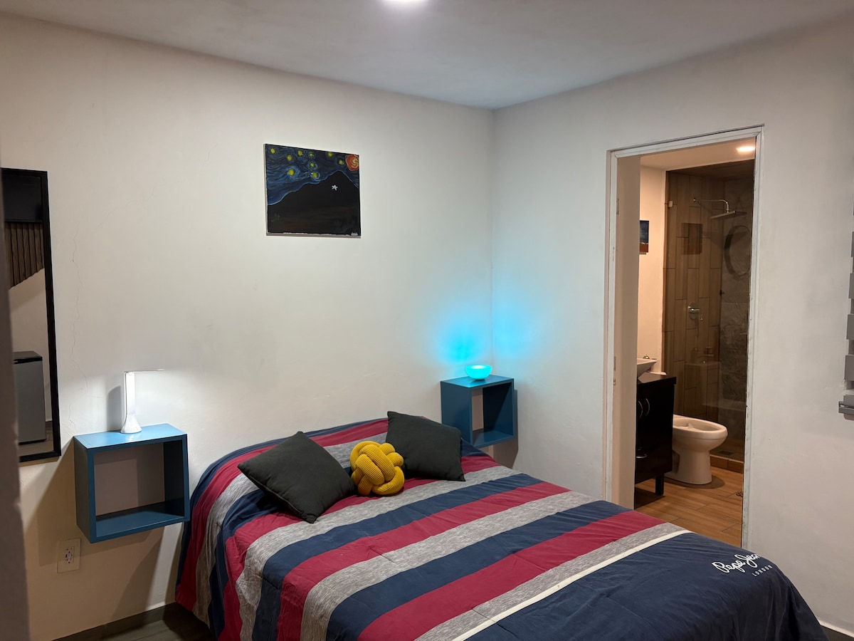 Espacio diseñado para experiencias que inspiran. Cocina equipada (¡café premium incluido!), habitación con closet y ropa de cama 100% algodón, baño completo y TV4K+WiFi ultrarrápido. Atención 24/7 con el corazón: resolvemos necesidades, revelamos secretos locales o co-creamos tu itinerario. Ideal para nómadas, viajeros o almas en transición. Aquí no hay límites: trabaja, descansa o explora desde un hogar que late a tu ritmo. 📍 Ubicación privilegiada, momentos que se quedan en el alma.