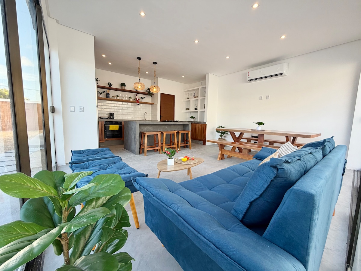 Cantinho No Mar es una espaciosa casa frente al mar con una espectacular terraza - ¡perfecta para brindar la puesta de sol todas las noches! 2 habitaciónes (1 con terraza) con a/c y baños en-suite + amplio escritorio/área de trabajo, cocina equipada, baño social, comedor, Smart TV, WiFi, patio y deck. Espacio para lavar/secar/guardar equipo de kitesurf. *El 2o dormitorio puede tener 2 camas individuales o 1 cama Queen. Limpieza diaria. Fácil de caminar al centro, mercados y restaurantes.