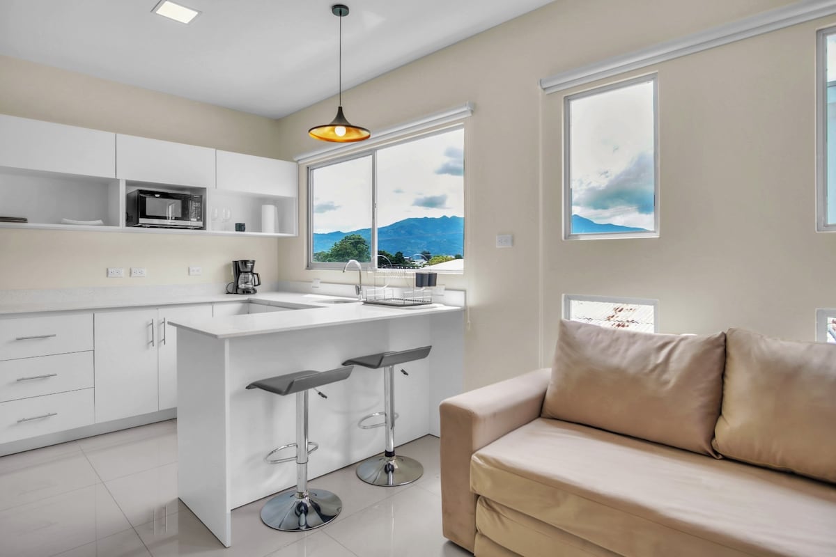 Apartamento totalmente equipado con todo lo necesario. Convenientemente ubicado en un barrio tranquilo de San Pedro, a solo 5 minutos a pie de la carretera principal, donde puedes encontrar supermercados, centros comerciales, cines, restaurantes, bares... A 15 minutos en autobús del centro de San José. También es perfecto para estancias más largas. Incluye: - Wifi rápido (con opción LAN). - Televisor de 50 pulgadas. - Cocina totalmente equipada. - Espacio de trabajo.