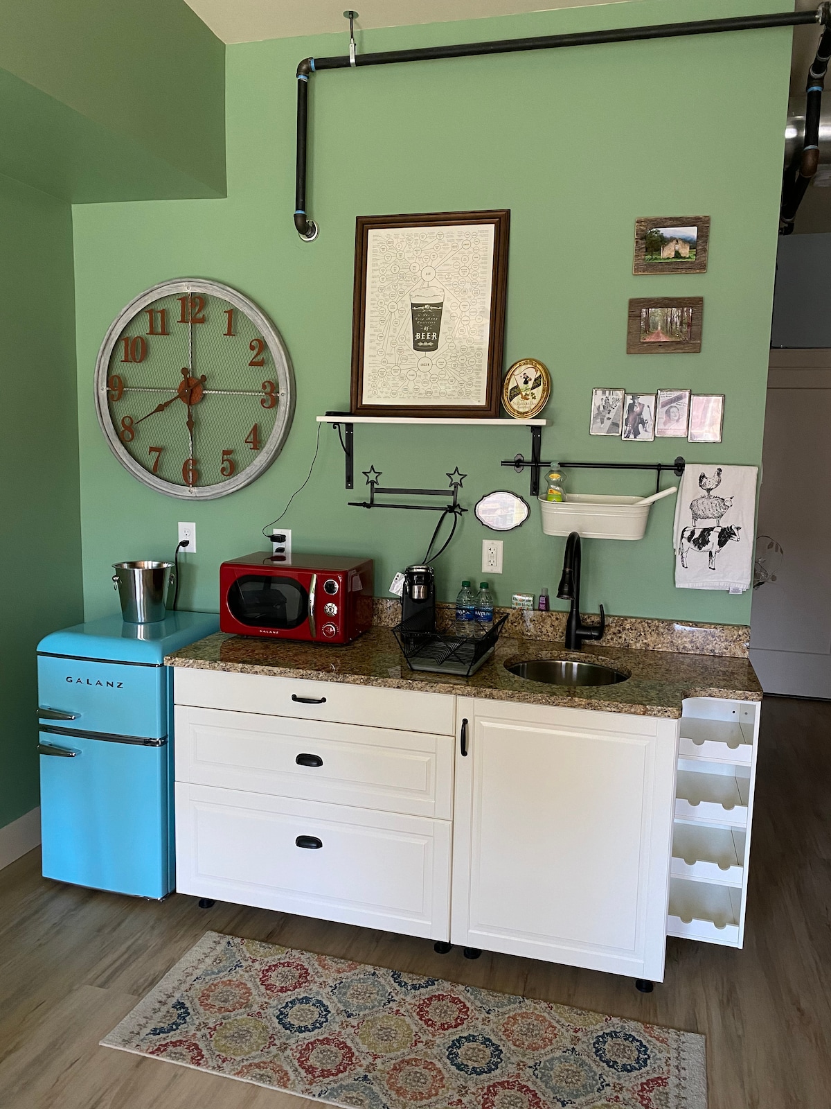 Hello there! This historic apartment has been completely renovated. It features exposed original brick, and hardwood floors. This room is equipped with a comfy queen bed, Roku TV with a variety of cable channels, and a kitchen (complete with an oven, stove, microwave, and fridge). Feel free to use any of them! Channel your inner cook! The bathroom features a shower and bath tub. Check out all our listings at Airbnb.com/p/galenaapartments ( copy & paste into URL)