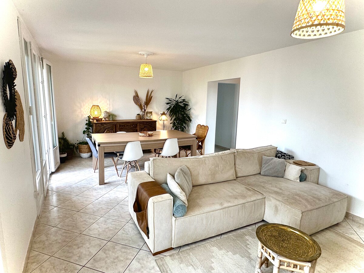 ¡Disfrute en familia o con amigos de toda la casa en dúplex, buhardilla e independiente, con una terraza privada, que ofrece buenos momentos en perspectiva! En las cercanías: aeropuerto, tiendas, OL vallée, Eurexpo, estación de tren TGV Part Dieu, tranvía, autobús, parque MIRIBEL, Lyon, Pérouges, Pilat. Para hacer su estancia agradable, ponemos a su disposición una cocina equipada, vestidor, ropa de cama, WIFI, kit de bebé (trona, cuna) ⚠️ Aparcamiento exclusivamente exterior ⚠️