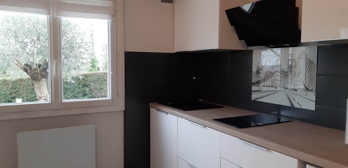 Estudio luminoso reformado, totalmente equipado e independiente con jardín. Zona residencial y tranquila, aparcamiento gratuito y seguro, con una ubicación ideal para todos sus viajes y visitas con tiendas cercanas para todas sus necesidades. - Visitas: estadio Groupama y LDLC Aréna (a 7 min), Eurexpo y el centro de Lyon (a 20 min), Meyzieu ZI, Markadas, Parc Grand Large, Via-Rhôna (a 5 min) - transportes: tranvía T3 , autobús TCL, aeropuerto/TGV Lyon-St Exupéry, autopista Cuna disponible