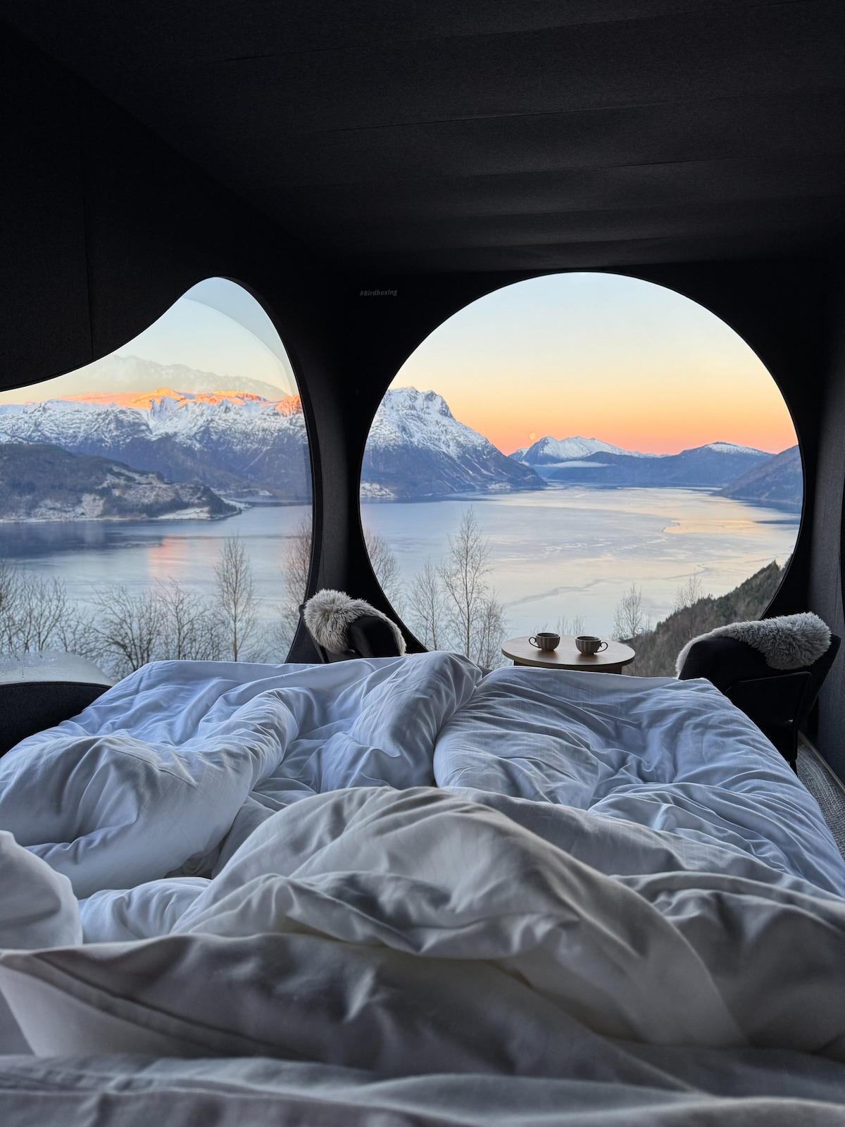 Birdbox Lotsbergskaara se encuentra a 270 metros sobre el nivel del mar en una hermosa joya: Nordfjord. Aquí tendrás una experiencia única enmarcada en una de las mejores vistas de Noruega, donde al mismo tiempo puedes disfrutar de la sensación de lujo y silencio. Mientras disfrutas de la relajante y cómoda Birdbox, duermes justo al lado de los ciervos pastando y las águilas flotando justo afuera de la ventana. Además, está repleto de experiencias turísticas y gastronómicas únicas en el área. CONSEJO: ¿tus fechas ya están reservadas? ¡Echa un vistazo a Birdbox Hjellaakeren!