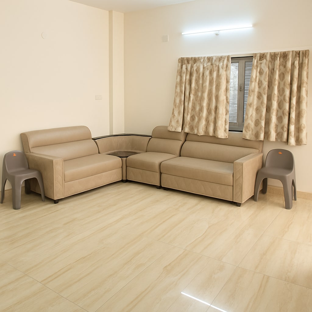 Nuestro 2Bhk es un edificio completamente nuevo que se encuentra en el corazón de la ciudad de Hyderabad y a pocos minutos de estándares internacionales de conectividad como el aeropuerto internacional y la carretera de circunvalación exterior. Nuestro piso está a pocos minutos de hospitales de estándares internacionales como CARE, CONTINENTAL y AIG. Nuestro piso de 2Bhk tiene interiores elegantes y cocina totalmente equipada para hacer aventuras con comida.