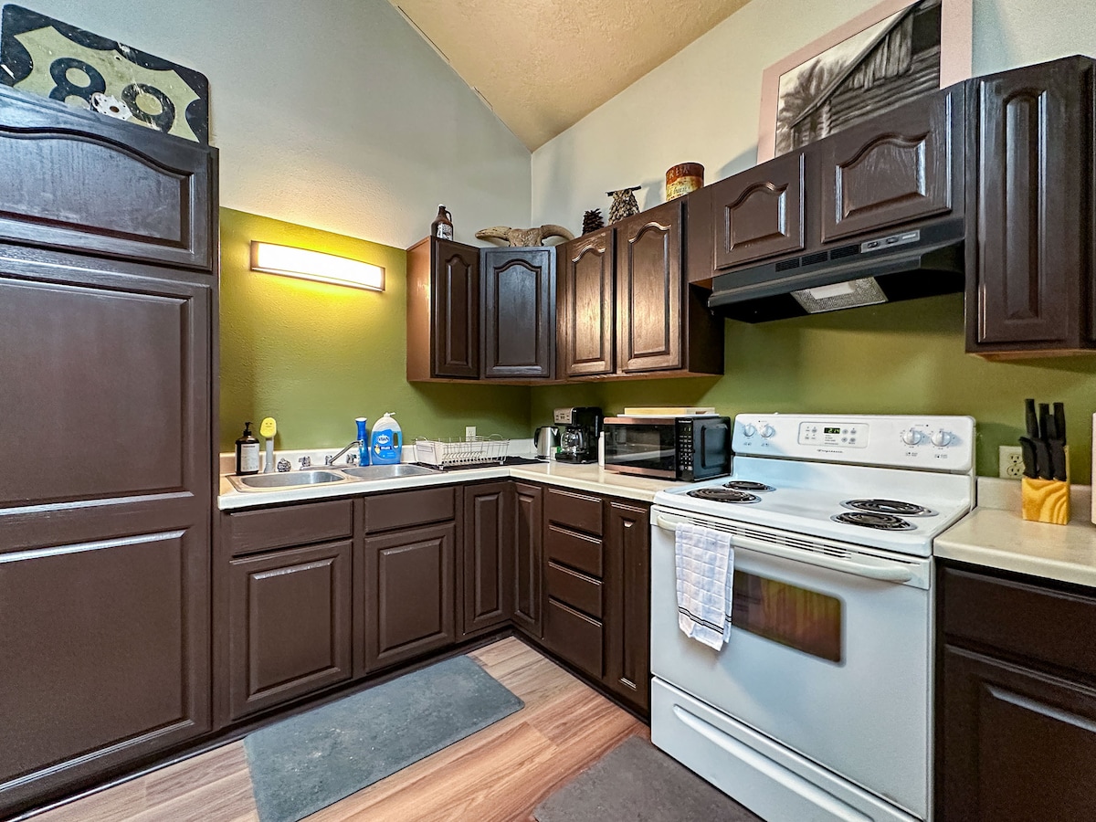 This cozy cabin offers the ultimate getaway. Relax in the spacious living area, sit by the fireplace, and take in the views that will allow you to enjoy your peaceful surroundings. This 1200 sq ft cabin includes 2 bedrooms (one king, one queen) , a bonus bunk room and a sofa bed. Newly remodeled full kitchen, wood burning fire place, laundry and game room complete the space. Price listed is for 2 adults with an additional $10.00 per night/person.