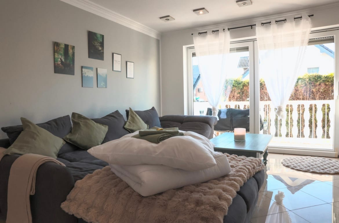 El departamento de alta calidad y amorosamente amueblado está en un hermoso suburbio de Aquisgrán. El departamento está totalmente equipado con todo lo necesario para tu corazón. Una cocina totalmente equipada, un dormitorio grande con una cama muy acogedora, sábanas de alta calidad y un armario con espejo. ¡Un dormitorio lindo más pequeño es con acogedoras camas individuales elegantes y en la sala de estar hay un cómodo sofá cama para 2 personas! En auto, puedes llegar a la ciudad en 10 minutos y en autobús en 20 minutos. :)