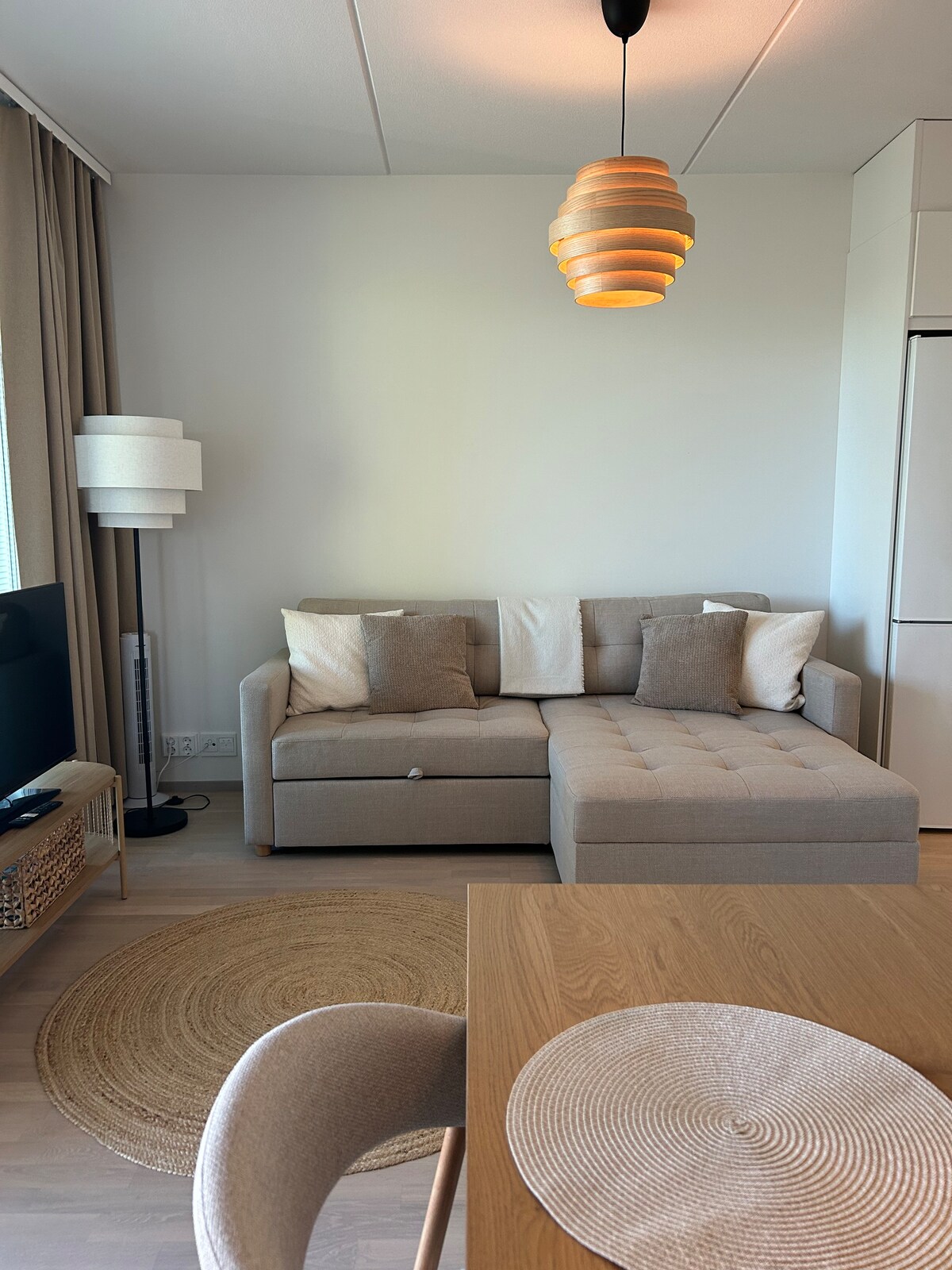 Ihastuttava yksiö upeilla järvinäköaloilla. Tämä moderni vuonna 2019 valmistunut yksiö sijaitsee vain 6 km päässä keskustasta ja tarjoaa kaiken mukavaan oleskeluun: täysin varusteltu keittiö, astianpesukone, pesukone, tilava parveke upeilla näkymillä, silitysrauta ja hiustenkuivaaja. Asunnossa on parisänky ja levitettävä sohva, majoittaen jopa 4 henkilöä. Autopaikka löytyy heti talon läheisyydestä (noin 150-200m) Talon välittömässä läheisyydessä on uimaranta sekä lähikauppa vain 750 m päässä.