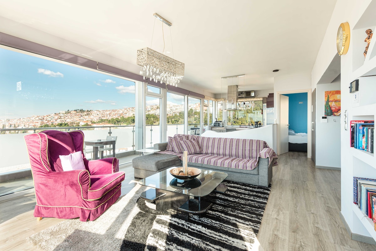 ¿Quieres descubrir el secreto de la extraña belleza de Salónica? Vive como un habitante más y descúbrelo por ti mismo en este apartamento contemporáneo situado en el corazón de la ciudad. Disfruta de un tiempo de tranquilidad, relájate y desconecta en este apartamento de lujo totalmente renovado, en el sexto piso de la calle más comercial de la ciudad. Aprovecha al máximo tu estancia y descubre el centro cultural de la ciudad, o salta de bares y restaurantes eclécticos a acogedoras cafeterías artesanales, que están, chicos, no estoy bromeando, en tu puerta.