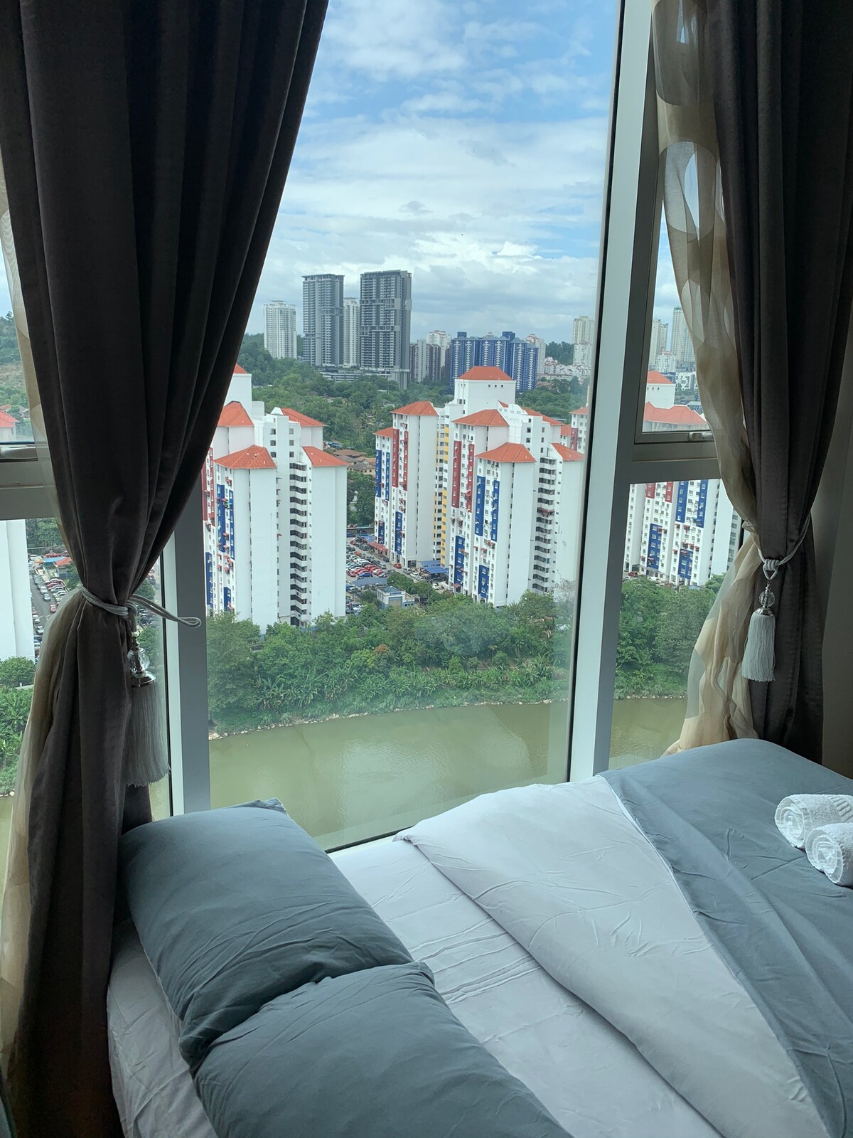 Un acogedor dúplex en el piso más alto del edificio (nivel 21), con una cama tamaño queen y un sofá de 3 plazas. Adecuado tanto para estadías cortas como largas. El edificio se encuentra en el centro comercial De Centrum, con tiendas como Super7 (supermercado), Mr. DIY, Watsons y 7-Eleven, entre otras, e instalaciones como lavanderías y una clínica (Poliklinik MyMedik). •Hora de check-in: a partir de LAS 15:00 H. •Hora de salida: 12:00 H.