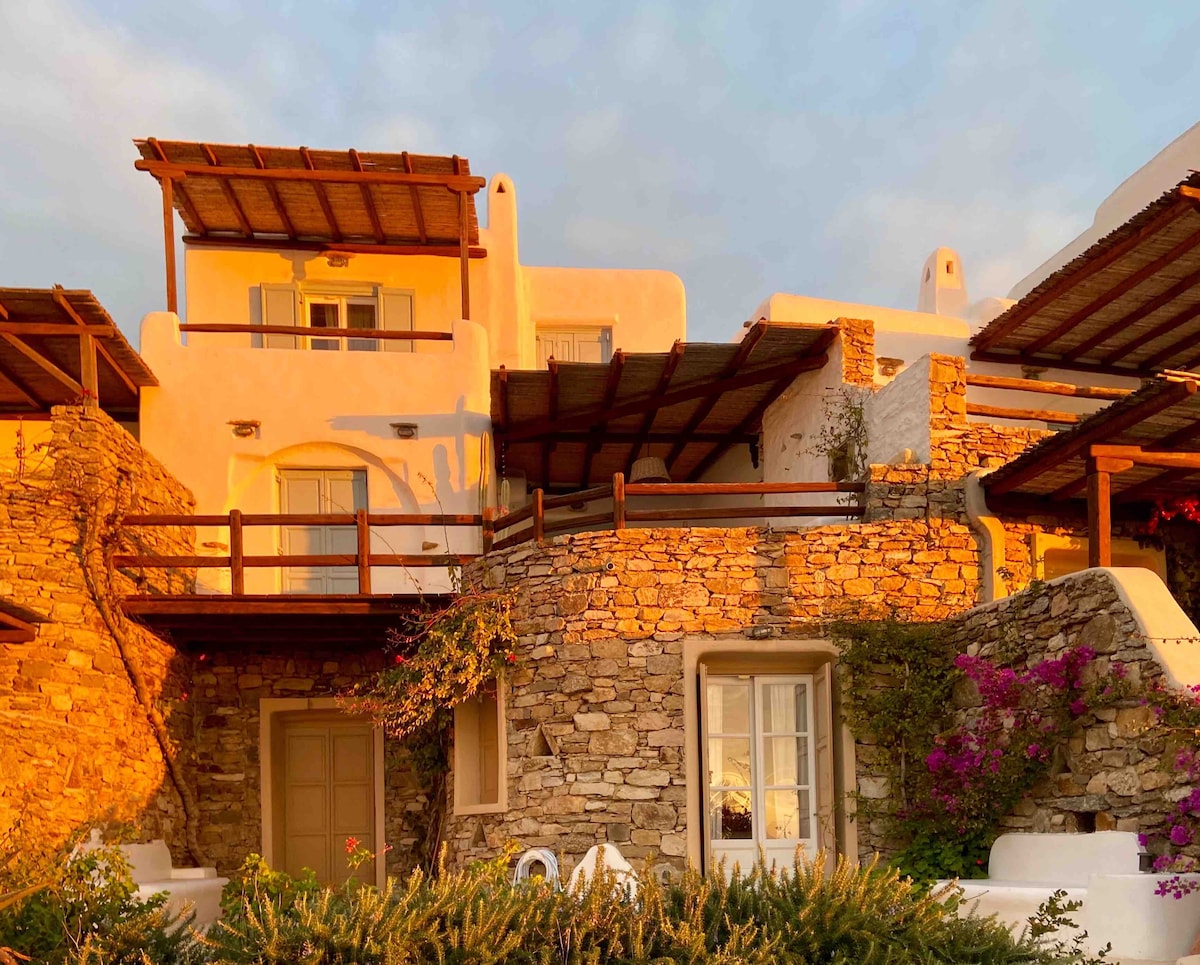 ¡Te damos la bienvenida a nuestra nueva villa frente al mar! Ubicada en la parte de lujo de la isla, en la zona de Kalafatis, a 4 minutos a pie de la playa. Haz que tu estancia sea inolvidable disfrutando de las mejores puestas de sol y de las vistas al mar desde tu piscina privada. 4 dormitorios, todos con baño privado y aire acondicionado. El lujo se une al estilo tradicional para que te sientas como en casa. A 5-10 minutos en coche de Ano Mera, los mercados y la mayoría de las playas del sur. También organizamos cualquier tipo de servicio como transporte privado 24/7.