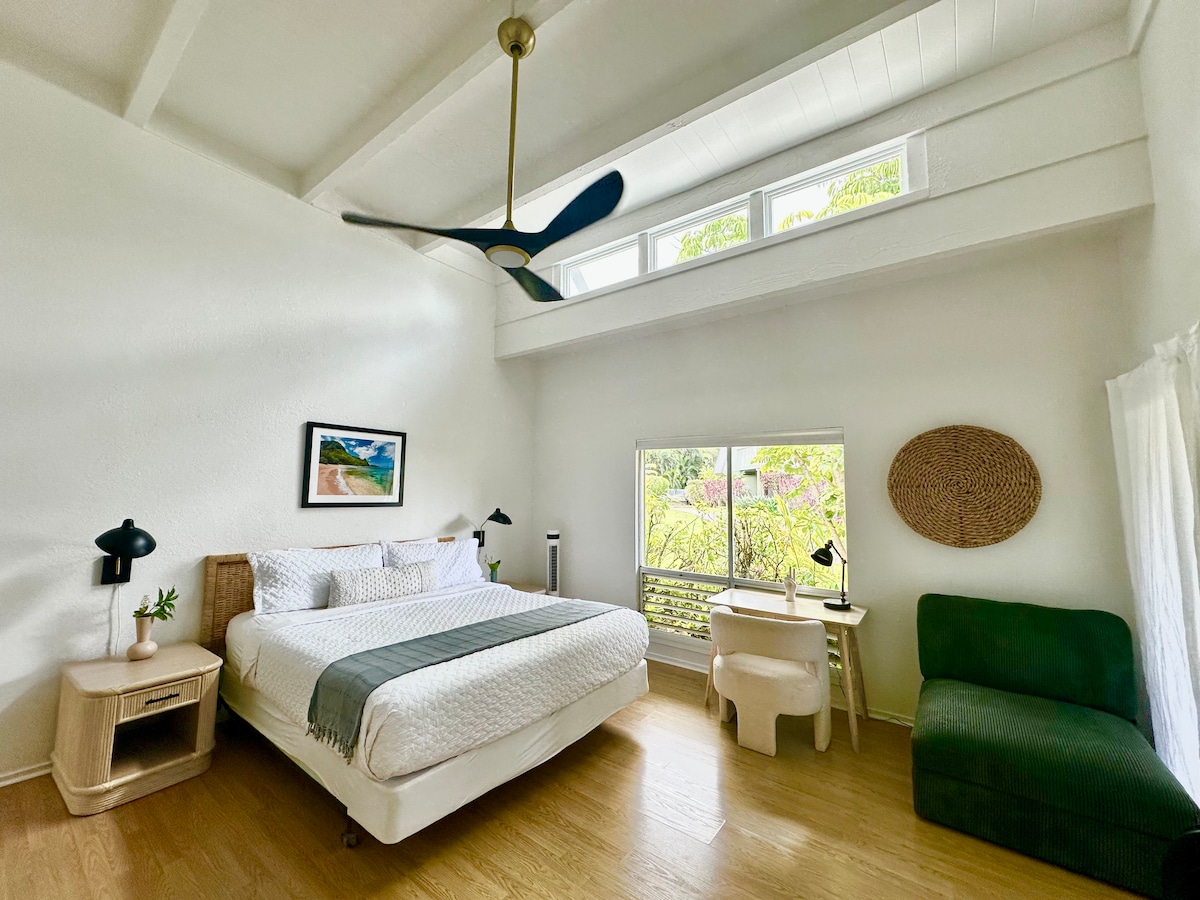 ¡🌺 Bienvenido a tu sereno Kauai Oasis repleto de comodidades! ☀️ Este alojamiento lleno de luz combina la comodidad moderna con la belleza natural de Kauai. 🌿 Cuidadosamente seleccionado con arte alegre y muebles de alta gama. ✅ NUEVO Diseño con estilo ✅ NUEVO aire acondicionado en todas las habitaciones ✅ A 8 minutos de Hanalei ✅ Cama King ✅ Cómodo sofá cama completo (capacidad para 1-2 personas) ✅ Cocina totalmente equipada ✅ Lavandería en la unidad + secadora Wifi ✅ rápido + espacio de trabajo ✅ Playa y equipo de snorkel ✅ Televisores inteligentes ✅ Acceso a la piscina, bañera de hidromasaje y barbacoa Estacionamiento reservado✅ gratuito