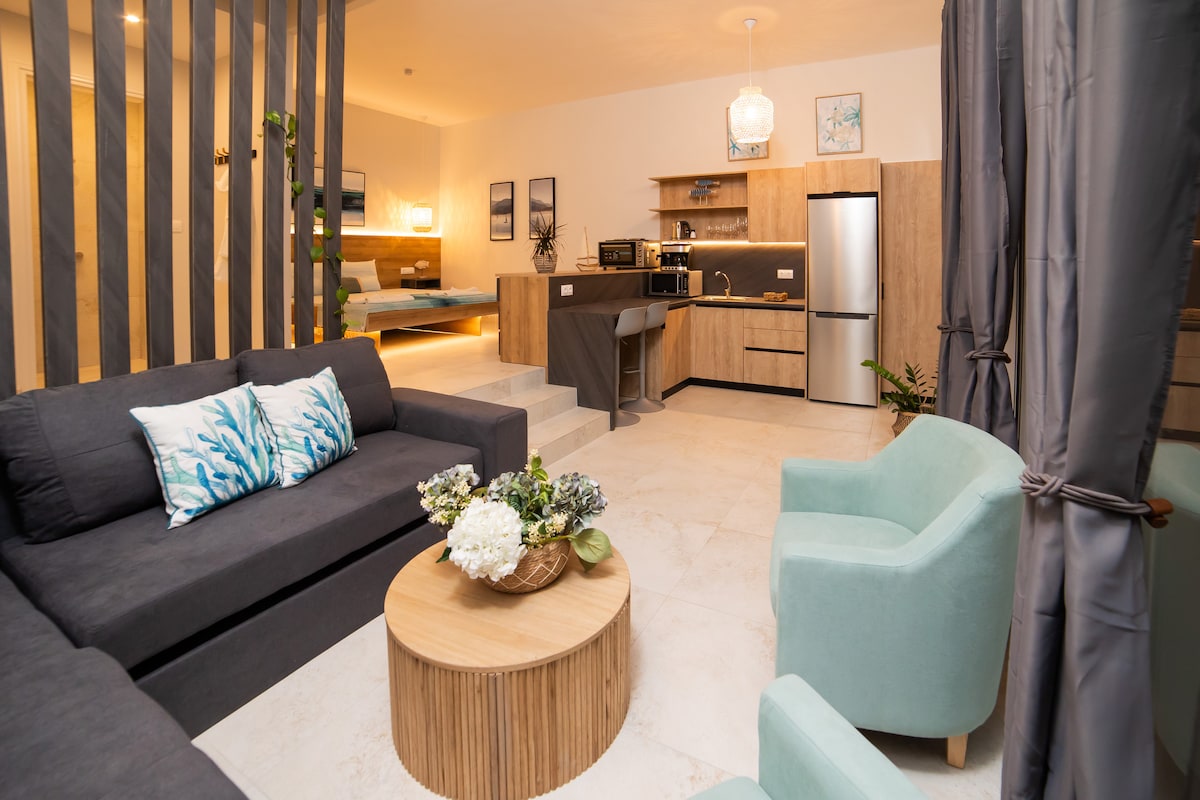 Stay in this spacious apartment and live like a true local in Massouri. We're within walking distance to restaurants, climbing routes, beaches and shops. Our rental comes with 1 bedroom, living room, a private bathroom and kitchen that you're free to use any time. AC, a washer, Wi-Fi, 40 " TV with Netflix, microwave oven, hair dryer, kitchen appliances, refrigerator, builtin sofa, working desk -- we've got everything you need.