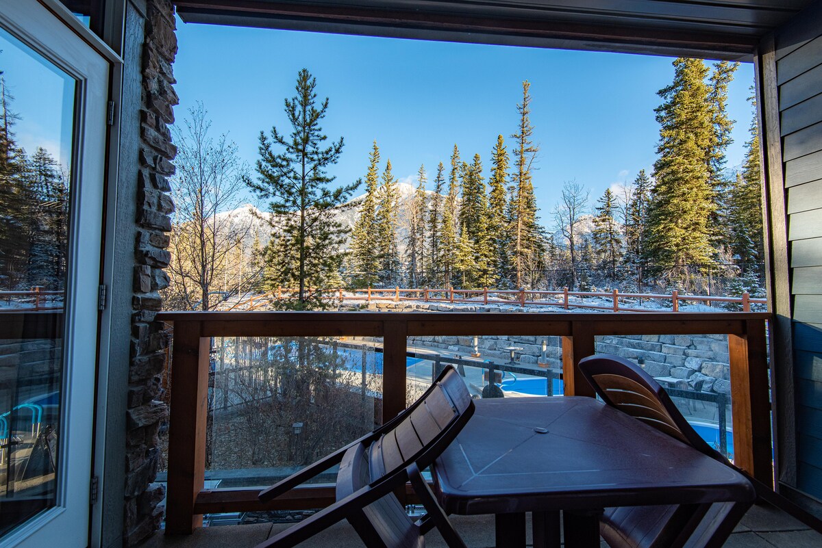 Top floor 1 bedroom suite offering stunning views of Lady Mac & Grotto Mountain from a private balcony: - 15 min walk to downtown Canmore - 15 min drive to Banff - Free High-speed Wi-Fi & Cable - Free Banff Park Pass - Heated Underground parking with EV chargers - Master bedroom with King Bed, walkout to balcony - Living Room with fireplace, TV & a plush couch that can easily be pulled out into a queen bed - Full access to Resort shared amenities like heated pool, 2 hot tubs & BBQ/Patio area