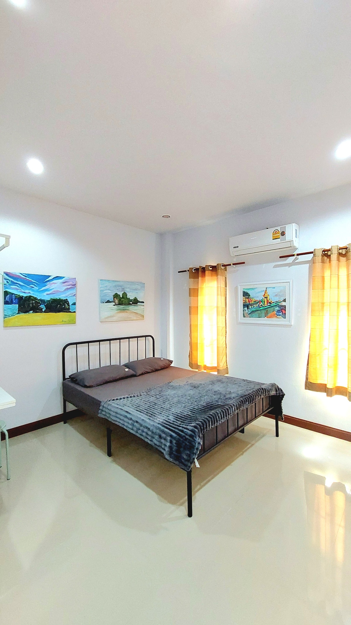 Habitación en Surat Thani, Tailandia. Segura, limpia y cómoda, con buena ubicación en la ciudad. Tenemos 3 habitaciones en esta casa y esta es la habitación número 1, la habitación grande con baño en suite, con aire acondicionado, ducha con agua fría y caliente, Wi-Fi gratuito con internet de alta velocidad por fibra óptica, bicicleta, refrigerador, estufa eléctrica y microondas en la cocina. Además, ofrecemos servicio de alquiler de bicicletas, taller de arte y servicio de obtención de licencia de conducir tailandesa para extranjeros. Mapa: 49P9+WR Surat Thani, distrito de Mueang Surat Thani, Surat Thani, Tailandia