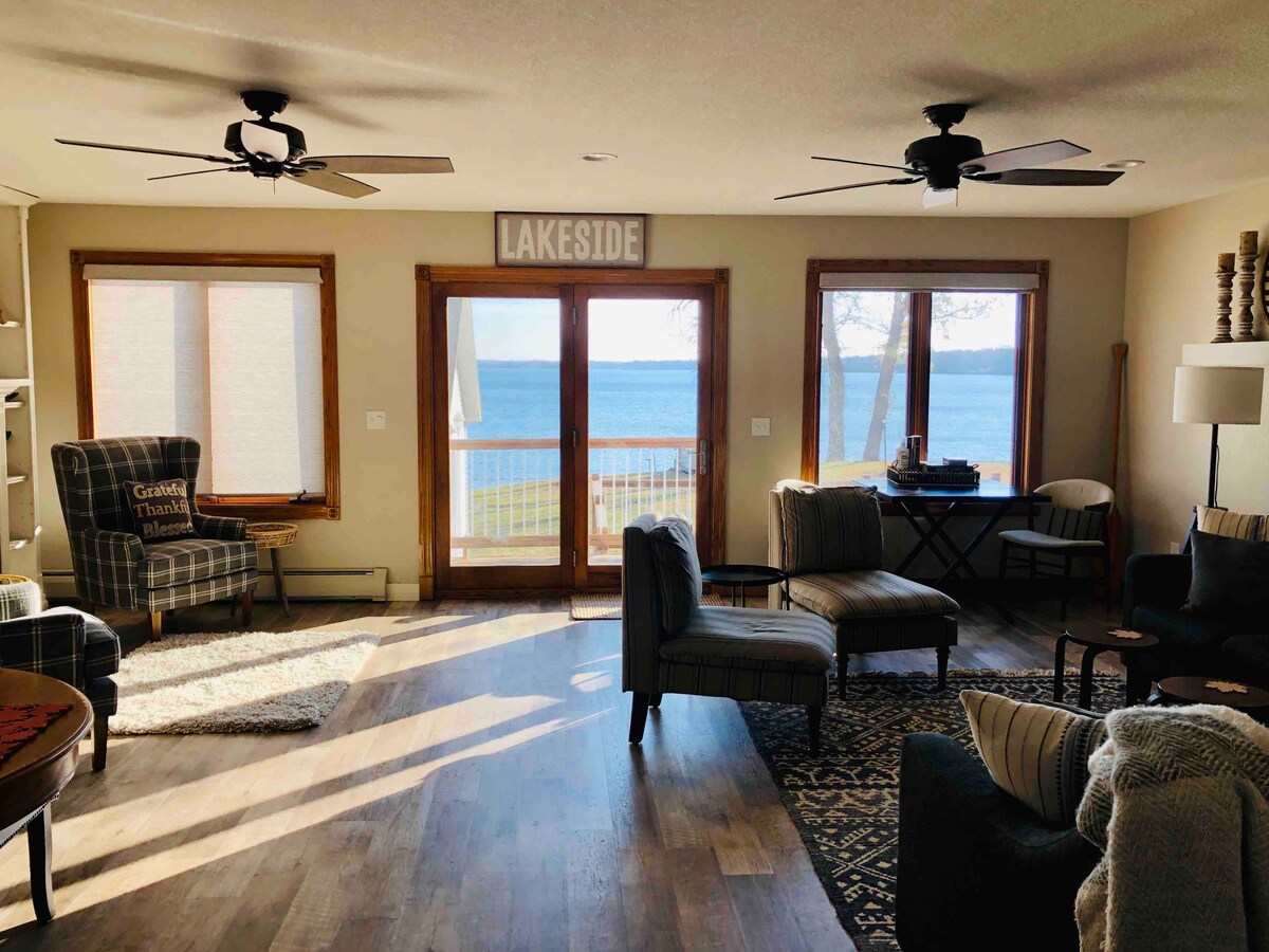 ¡10 % de descuento en estancias de 4 noches o más! Comienza tus tradiciones de vacaciones familiares de verano en nuestro alojamiento junto al lago. 100 pies de frente al lago privado en Eagle Lake, cerca de Willmar, con 80 pies de muelle y patio junto al lago para sentarte con tu café de la mañana viendo el amanecer y vigilar a los niños mientras juegan en el agua. Check-in y check-out de autoservicio. También puedes sentirte bien al alquilar nuestro alojamiento, ya que donamos el 10 % de nuestros ingresos de nuestros alquileres a varias organizaciones benéficas.