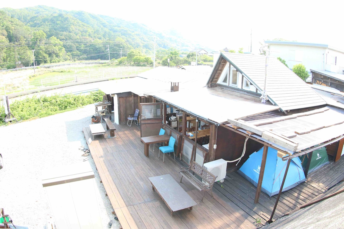 Una casa renovada de una sola planta a lo largo del río Yoshino en la prefectura de Nara. Está ubicado en un entorno natural y tranquilo donde puedes sentir los cambios de las cuatro estaciones cercanas. Es un anfitrión, pero los espacios compartidos son la entrada, el comedor y la cocina, y los espacios privados como dormitorios, inodoros y duchas son privados para los huéspedes. Dado que la habitación de invitados y la habitación privada del anfitrión están separadas, no me importa el sonido de la vida. Desayuno TKG con ingredientes locales. También hay barbacoa, fuegos artificiales y fuegos artificiales en el jardín también están disponibles en el jardín. Puedes lavar la ropa libremente durante tu estancia, y el área de secado y la secadora están disponibles de forma gratuita. Limitado a 1 grupo por día.El número de 8 personas puede usarlo. Dormir gratis con niños de hasta 2 años.Las mascotas importantes pueden permanecer en el interior como de costumbre.(El precio es el mismo tanto para adultos como para niños, dependiendo de la cantidad de ropa de cama) Básicamente, el anfitrión estará allí para alojarse, así que no dudes en informarnos sobre lugares de interés y orientación local.Por supuesto, también puedes alquilarlo completamente a tu conveniencia. Los dos dormitorios están separados, por lo que puedes quedarte con otras familias sin dudarlo.