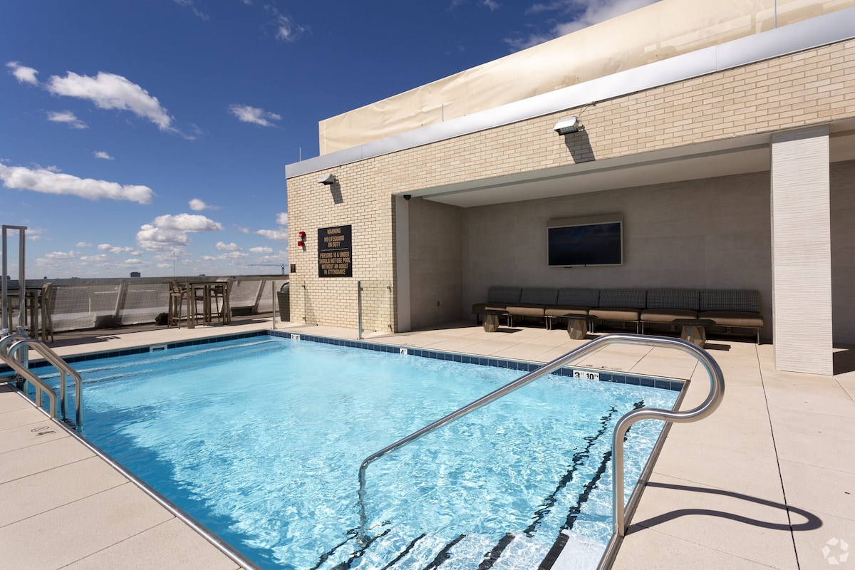 Apartamento limpio y cómodo de 1 dormitorio. A 20 minutos del aeropuerto y a 8,7 millas del estadio. Ubicado en la vibrante, creativa y diversa comunidad River Market con acceso a muchas atracciones y áreas de entretenimiento de Kansas City. Toma el tranvía gratuito hasta Union Station, Crossroads, Power & Light District/T-Mobile Center, el centro de convenciones y mucho más. Tu estancia incluye acceso a la piscina y al gimnasio, así como un patio comunitario en la azotea con vistas al horizonte. Cierra el fútbol de KC Current.