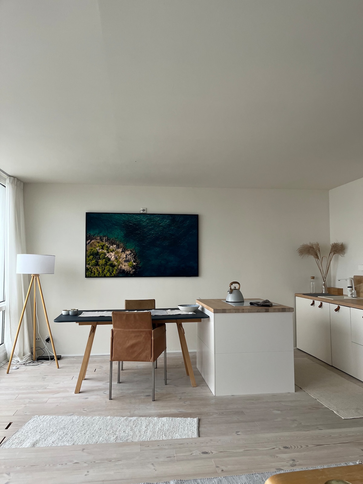 Departamento moderno, abierto y espacioso con vistas impresionantes a la bahía de Kiel, ubicado directamente en el puerto deportivo Kiel Schilksee. El “dormitorio” es un área para acostarse a media altura (sin altura de pie), a la que se puede llegar a través de una pequeña escalera de madera. También tienes unas vistas espectaculares del agua desde la cama. También hay un rincón de TV aquí. 1 plaza de aparcamiento en un estacionamiento asegurado con una barrera está a tu disposición.