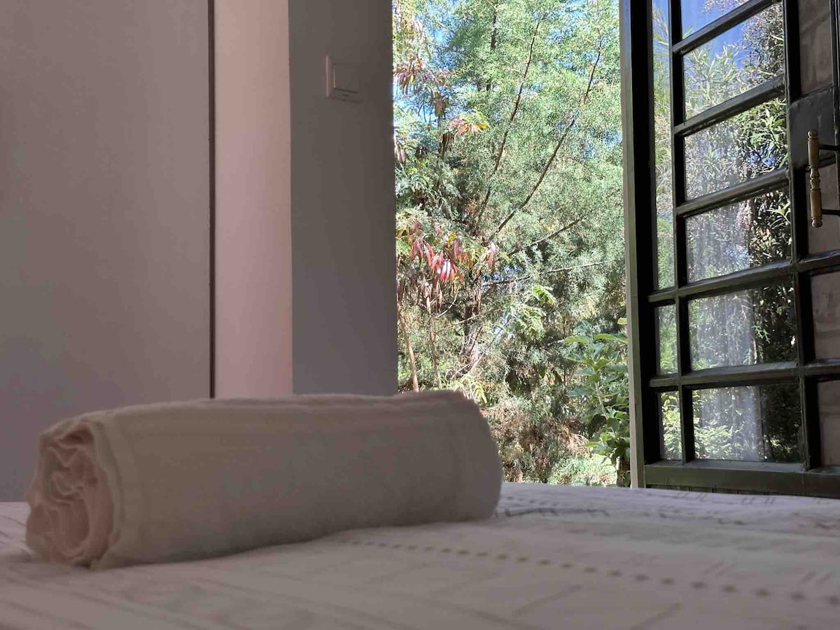 Árboles, espacio, privacidad y elegancia definen este lugar. Ha sido cuidadosamente preparado para personas que quieren despertarse con el canto de los pájaros y estar en contacto con la naturaleza. Está a 4 km del bullicio de la ciudad. También somos verdes: funcionamos con energía solar.