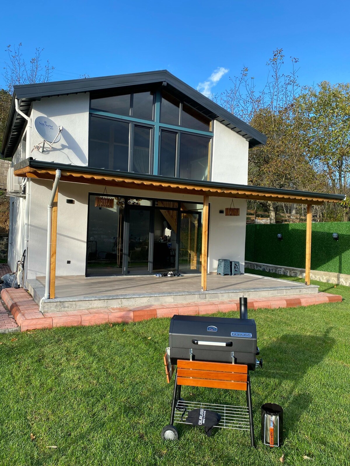 Ubicado en un terreno separado en el barrio de Avdan, a 8 km de Ağvay, en una zona donde se puede ver la vista panorámica de la naturaleza desde cada habitación. Hay una glorieta cubierta de 40 m2 y una glorieta abierta de 25 m2, y hay una chimenea, barbacoa y un pozo de fuego en las glorietas. Hay una chimenea francesa en el salón de la casa. 2 camas dobles, 2 camas individuales y un sofá en forma de L que se abre en el salón pueden alojar a dos personas muy cómodamente. Nuestra piscina es ecológica. Tiene permiso de residencia alquilada con fines turísticos. 41_483