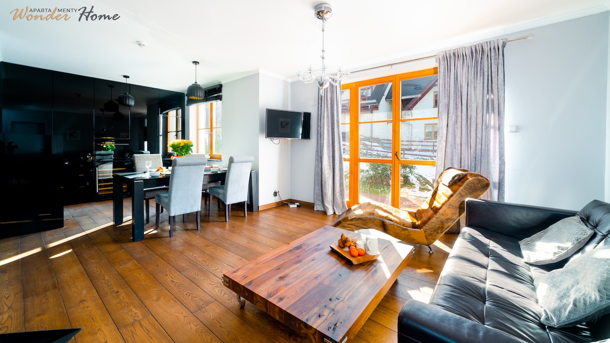 Te damos la bienvenida a un apartamento de 48 metros cuadrados, situado a 200 metros de la frontera del Parque Nacional de los Montes Gigantes. Es el único departamento en este edificio. Debajo hay una sauna para los huéspedes y un garaje privado. Encontrarás aquí un lugar para un máximo de 4 huéspedes y cualquier cosa que necesites para pasar un rato relajante en las montañas. El apartamento Jagodka tiene un balcón soleado de 10 metros cuadrados, sala de estar con chimenea, cocina totalmente equipada, elegante baño y un dormitorio. También hay un lugar de estacionamiento gratuito para tu auto/autos.