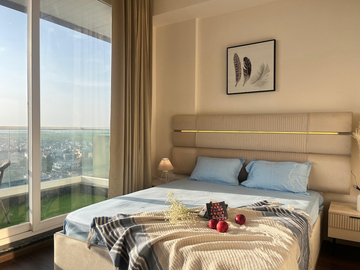 Nestled amidst the bustling Golf Course Road, yet offering a serene view of the Aravali forest range, this loft is a true urban oasis. Step into our spacious home with a living area, cozy dining area, and attached kitchen. Bedrooms offer rustic charm, comfy beds, ample storage, and access to peaceful terraces. A single bathroom is fully equipped. Enjoy views from two large terraces—one of the city and the other of the serene Aravali Forest, with a patio.