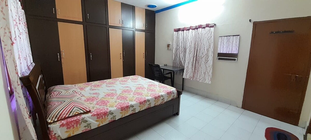 La habitación: habitación independiente de ocupación individual/doble en la planta baja de una villa de 3 plantas con baño privado. Instalaciones clave: respaldo de UPS, wifi gratuito, vigilancia por CCTV, estacionamiento. Distancia: 2,5 km del parque tecnológico Manyata, a 3 km de la carretera del aeropuerto. Comida: buenos hoteles vegetarianos a poca distancia a pie. Conectividad: autobús directo a las estaciones de autobús y tren de B 'luru. Disponibilidad de taxis las 24 horas. No preferimos hospedar parejas solteras. Además, la habitación es para no fumadores, no hay habitación con alcohol.