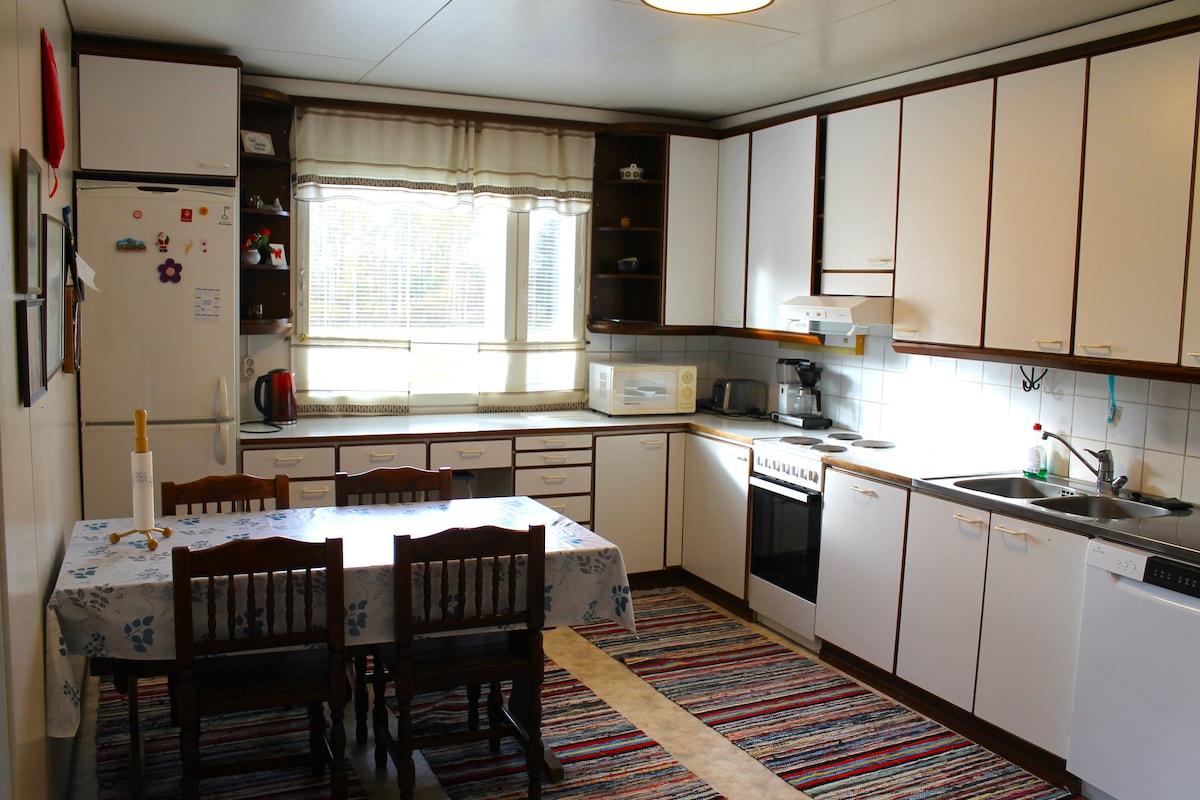 Ubicación tranquila en la zona residencial central de Alajärvi, todavía a pocos pasos de los servicios. Apartamento privado al final de nuestra casa unifamiliar. Refrigeración/calefacción rápida con una bomba de calor de fuente de aire. ¡Bienvenido! Una base ideal para hacer excursiones de un día a destinos de los alrededores, por ejemplo: Powerpark, circuito de Mika Salo, zoológico Ähtäri, mercados de Tangom, Ideapark, parque Duudson, tienda del pueblo central... Explora localmente: Aalto Center, Nelimarkka Museum, Red Tave Winery... Caminando por la pasarela junto al río...