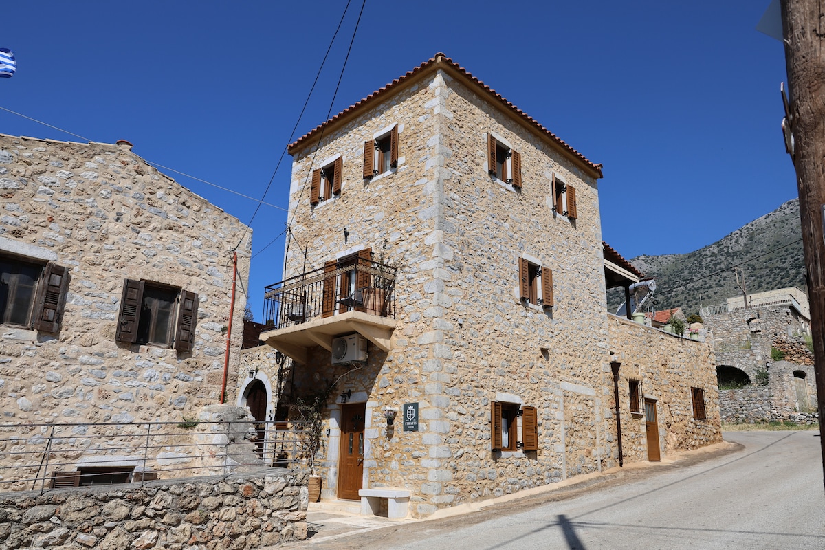 «Vista fantástica» A los pies del monte Taygetos, a una altitud de 650 metros, se encuentra el pueblo tradicional de Tseria. Al comienzo del pueblo con acceso directo en coche, una casa totalmente renovada te espera para disfrutar desde el balcón de las impresionantes vistas de la bahía de Messenia, las magníficas puestas de sol, olvidar los ritmos de la ciudad y disfrutar de la tranquilidad y el clima de la zona.